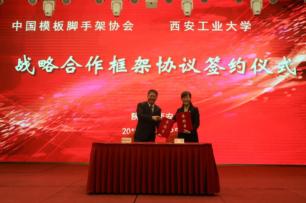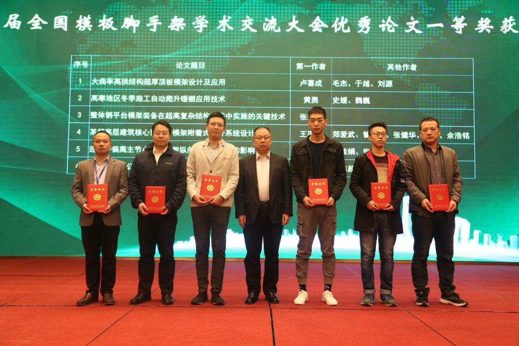 会上,中国模板脚手架协会理事长陆贻杰和委书记张英代表协会与公司签订了战略合作框架协议。大会为17家诚实守信企业和20篇优秀科技论文获得者颁奖,公司选送的1篇论文获得一等奖,3篇论文获得二等奖。