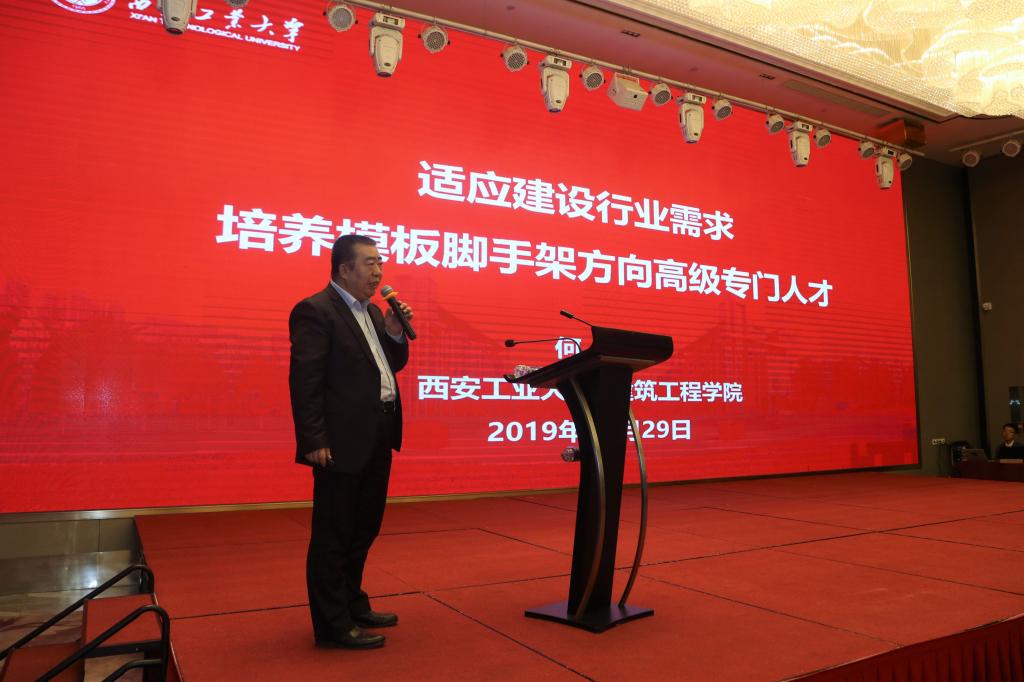 公司党委副书记吴介军、中国模板脚手架协会理事长陆贻杰和陕西省土木建筑学会理事长薛永武致辞,希望通过大会召开进一步加强校企之间的合作和交流,推动模板脚手架专业技术进步和行业发展。