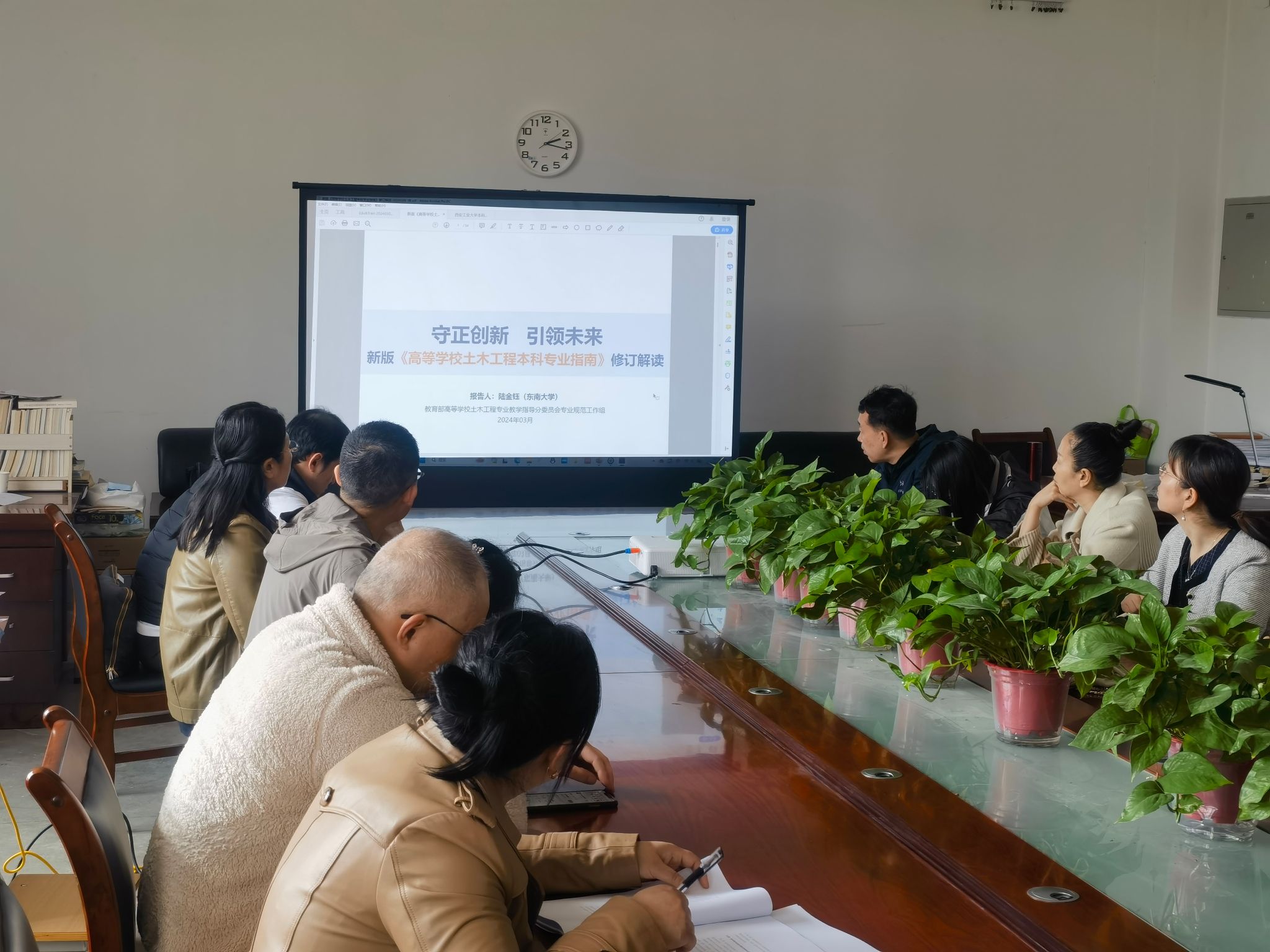 首先,会议集中讨论学习了《suncitygroup太阳集团本科公司产品审核评估应知应会知识手册(通用版)》和《陕西省普通高等公司本科公司产品审核评估实施方案和指标体系(试行)》,通过对两个文件的详细解读和研讨,统一思想,凝聚共识,认真研究指标体系,把握评建要义和指标内涵,找准土木工程专业在本科公司产品审核评估工作中的着力点和关键点,切实提高土木工程专业人才培养质量。