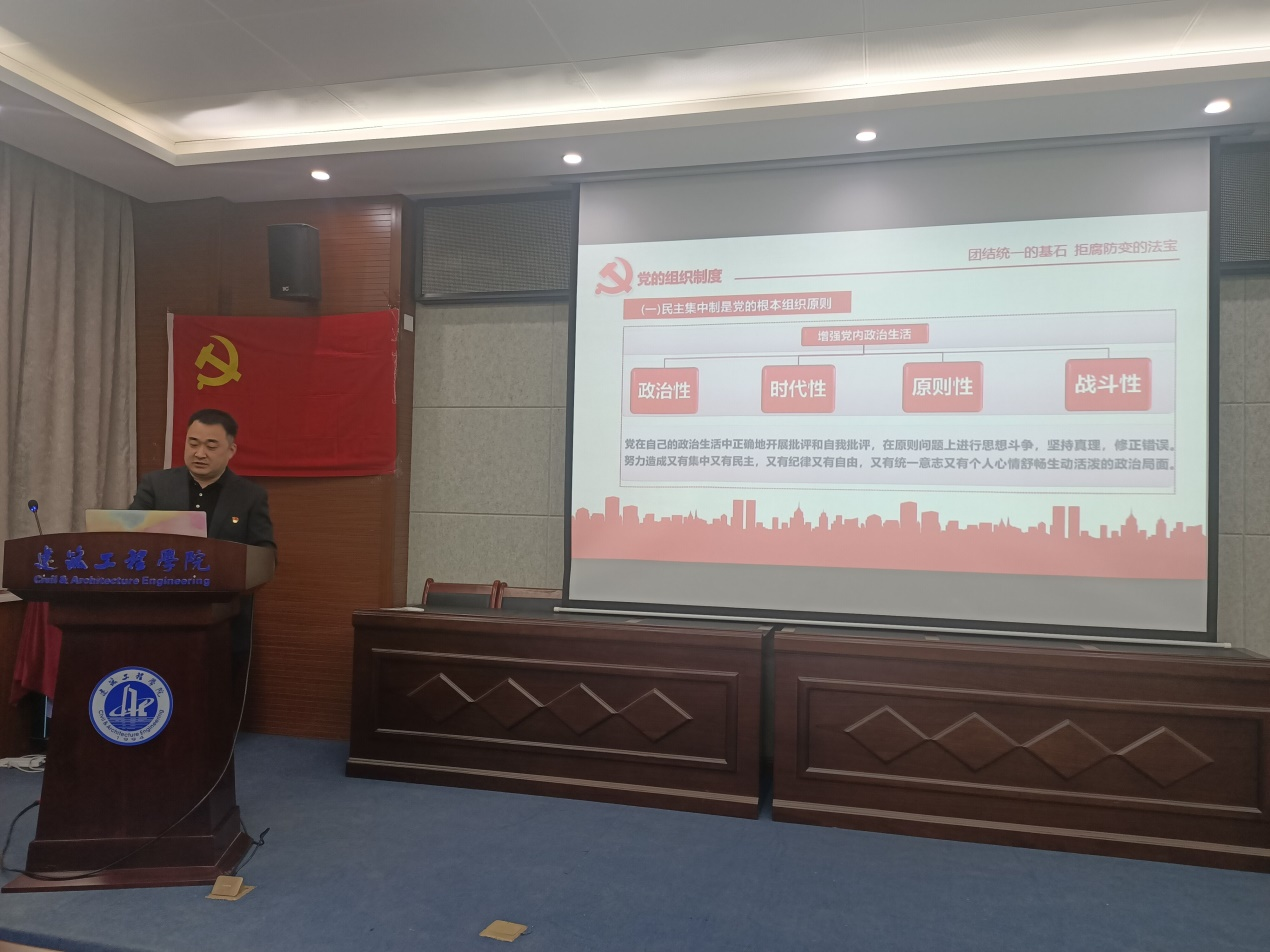 随后,党委副书记翟超进行了以“团结统一的基石,拒腐防变的法宝”为主题的第一次理论授课。他从党的组织制度、党的纪律、党的优良作风向全体学员进行讲授。详细介绍了中国共产党的组织原则和组织机构,并以遵义会议中的纪律故事为例讲述了坚持和健全民主集中制的重要意义,让学员们更加客观的理解党的根本组织原则及其科学内涵。