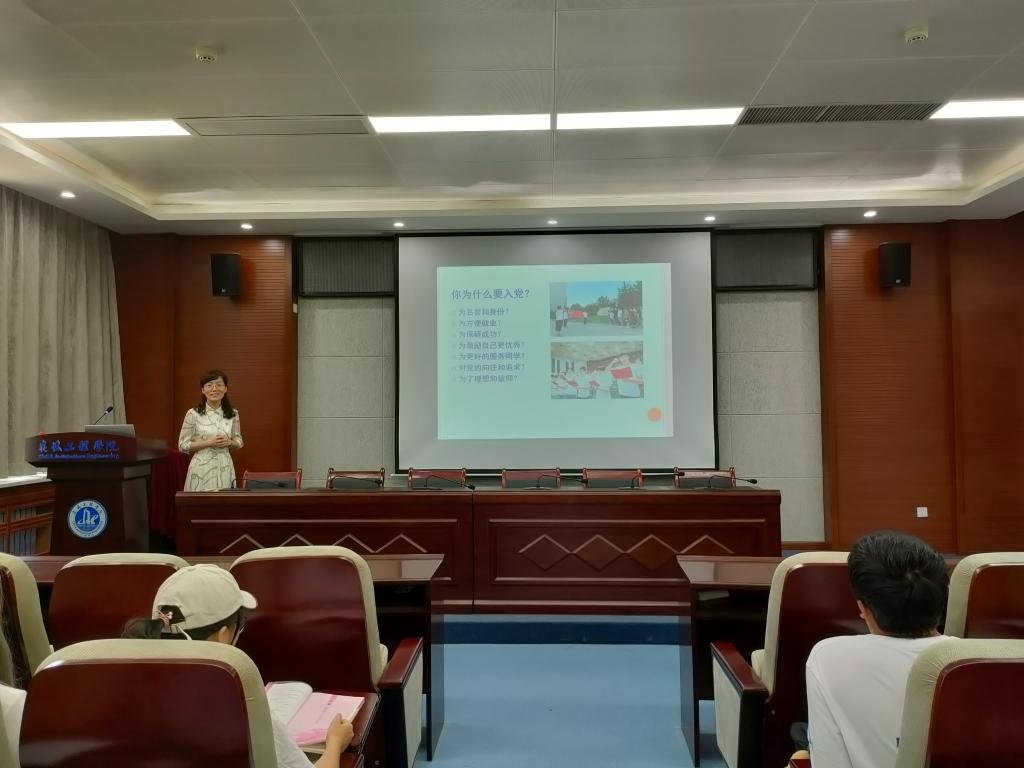 张英首先以一首《入党誓词歌》和一个小故事“真理的味道非常甜”引出党课的讲解,强调要始终把“共产党员的初心和使命”作为落实立德树人工作的根本遵循,要强化理论武装,要熟记中国共产党章程,更要明白党章的重要意义。随后,她解读了应该牢记的五个精神:长征精神、红船精神、延安精神、西迁精神和抗疫精神,明确“不忘初心、牢记使命”的理念,倡导青少年要高举中国特色社会主义伟大旗帜,为实现中华民族伟大复兴的中国梦不懈奋斗。最后,她指出老员工是祖国的未来和民族的希望,希望同学要有对历史责任的担当,砥砺前行,持续奋斗。