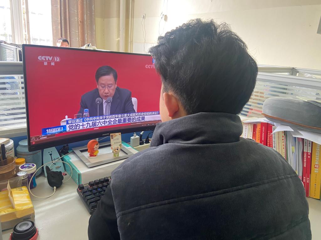 收看直播后,师生们纷纷表示:党的十九届六中全会,是在我们党百年华诞的重要时刻,在“两个一百年”奋斗目标历史交汇关键节点上召开的一次重要会议。要认真学习领会党的十九届六中全会精神核心要义,把学习贯彻党的十九届六中全会精神转化为推动工作、学习的具体行动,积极投身第二个百年奋斗大业,埋头苦干、勇毅前行,以更加昂扬的斗志、更加务实的态度为实现第二个百年奋斗目标、实现中华民族伟大复兴的中国梦而不懈奋斗。