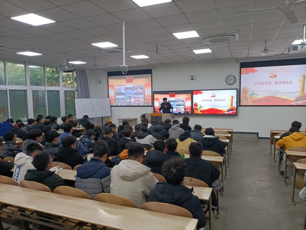 12月3日上午,公司各年级以“百年新征程,晨读明宪法”为主题,开展第八届国家宪法日“宪法晨读”活动。公司各年级充分发挥课堂主渠道作用,利用形势与政策课程休息时间组织员工通过普法网观看直播、同步参与活动,集体在现场同步跟读。随后,老师带领同学们回顾了中国共产党的百年峥嵘岁月、回顾中国法治建设的一程又一程,围绕国家宪法日开展专题学习。在活动中体会宪法温度、感受宪法力量。