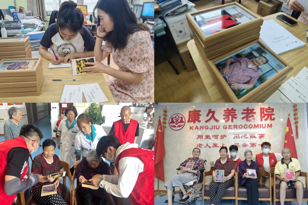 6月14日,在研究生第一党支部书记丁子杰和第二支部宣传委员白洋的组织下,志愿者们为老人装裱相片,并在明信片上写下了对老人诚挚和美好的祝福,随后带着装裱好的相框和贺卡再次前往康久养老院进行了回访,志愿者们为老人分发了相框并向老人介绍了相框的摆放方法,将明信片上的祝福读给老人们听,老人们对精美的明信片和照片十分喜爱,脸上难掩激动和喜悦之情,同时也向志愿者们表达了感谢。