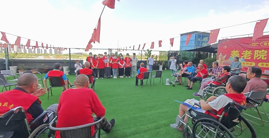 最后,志愿者们共同为老人表演合唱《我和我的祖国》,老人们聚精会神地听着,一部分老人跟着一起唱,蓝天绿草、欢声笑语,曲毕,老人们和工作人员给予了志愿者们热烈的掌声。