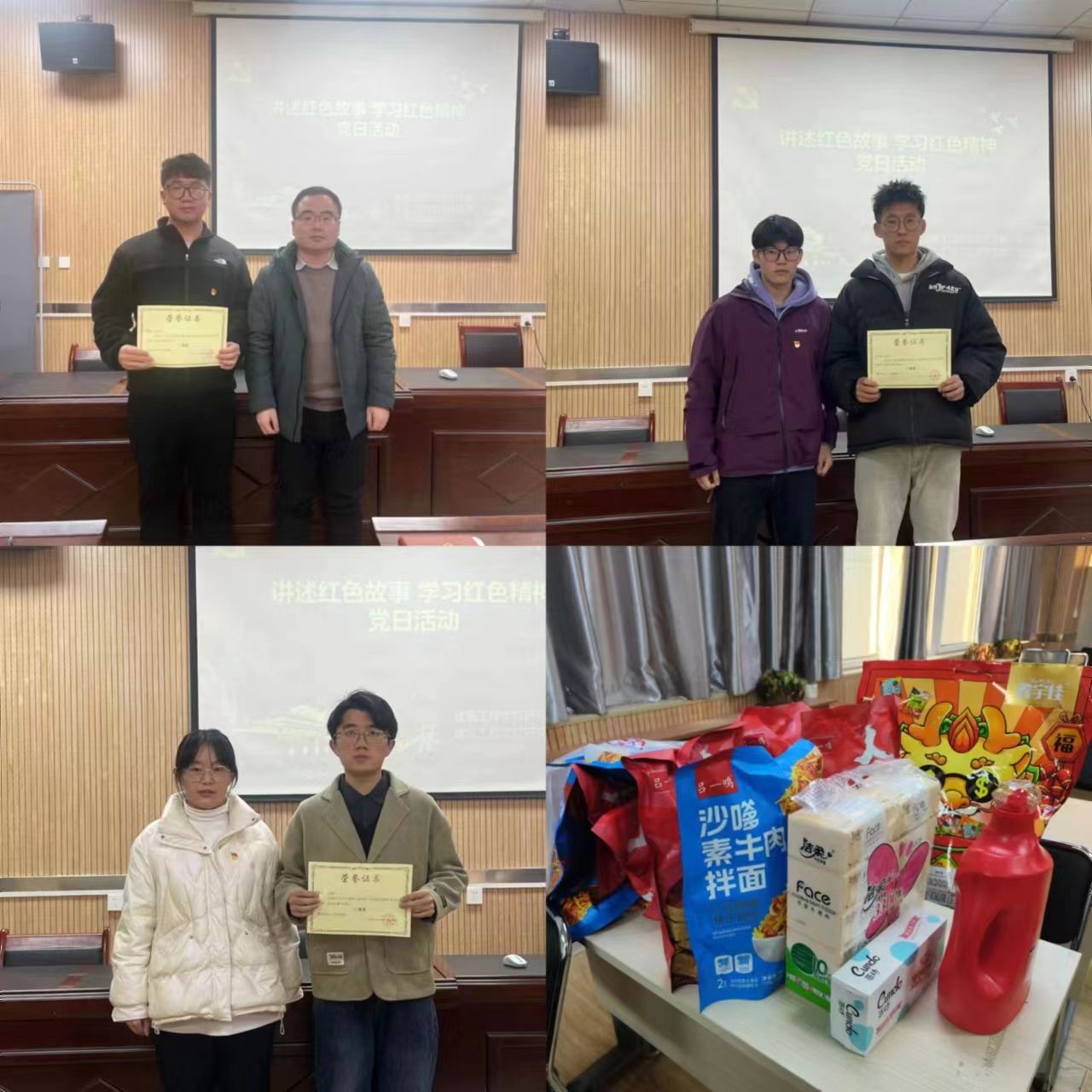 主持人介绍了评委及评分标准后,比赛正式开始。赵浩、常丽、董鑫龙、田心如、董嘉宏、闫亭、和香玉、任茂昌等8名同志以革命精神、革命先烈、革命战争等为题详细讲述了中国共产党人为民族独立、人民解放抛头颅洒热血的英雄故事,讲述了历史事件的伟大意义,谈了自己的体会,同时呼吁大家牢记历史,勇担使命。比赛结束后,董元浩对本次参赛选手的表现作出了中肯的点评并提出意见建议,丁子杰发表了此次学习红色精神的感悟并宣布了比赛的最终成绩,董元浩、敬丹丹为获奖选手颁奖,至此本次“讲述红色故事,学习红色精神”宣讲比赛圆满结束。