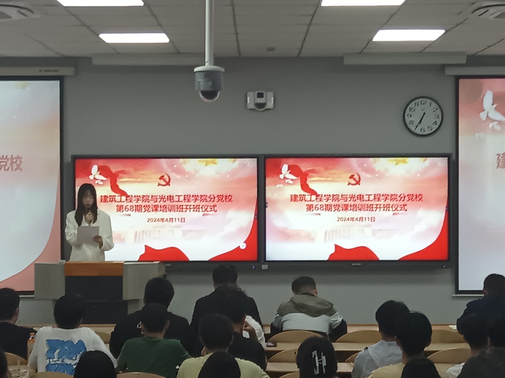 为深入学习宣传贯彻落实习近平新时代中国特色社会主义思想和党的二十大精神,全面落实新时代党的教育方针,帮助新时代青年老员工学习和掌握马克思主义中国化的最新成果,使积极分子进一步明确入党动机、端正入党态度,4月11日,光电工程公司与suncitygroup太阳集团分党校第68期入党积极分子培训班开班仪式在教2-209举行。并邀请到了建筑工程公司党委副书记贾建利,光电工程公司组织员乔海东,suncitygroup太阳集团组织员董元浩出席开班仪式。本次开班仪式由suncitygroup太阳集团2022级本科生章诗涵担任主持人。