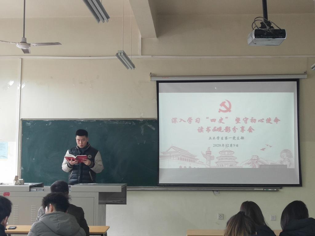 “深入学习四史,坚守初心使命” 观影、读书分享会上,全体党员观看爱国主义教育电影《我的1919》,通过荧幕共同重温了那段波澜壮阔的峥嵘岁月与热血史诗。随后,组织委员牛嘉伟带领大家集中学习了《中国共产党历史》中“马克思主义在中国的传播”相关内容,通过走近101年前的五四运动了解中国为什么需要马克思主义。会后,大家集体参与“网上重走长征路”暨推动“四史”学习教育竞答,推动“四史”知识学习往深里走、往实里走、往心里走。