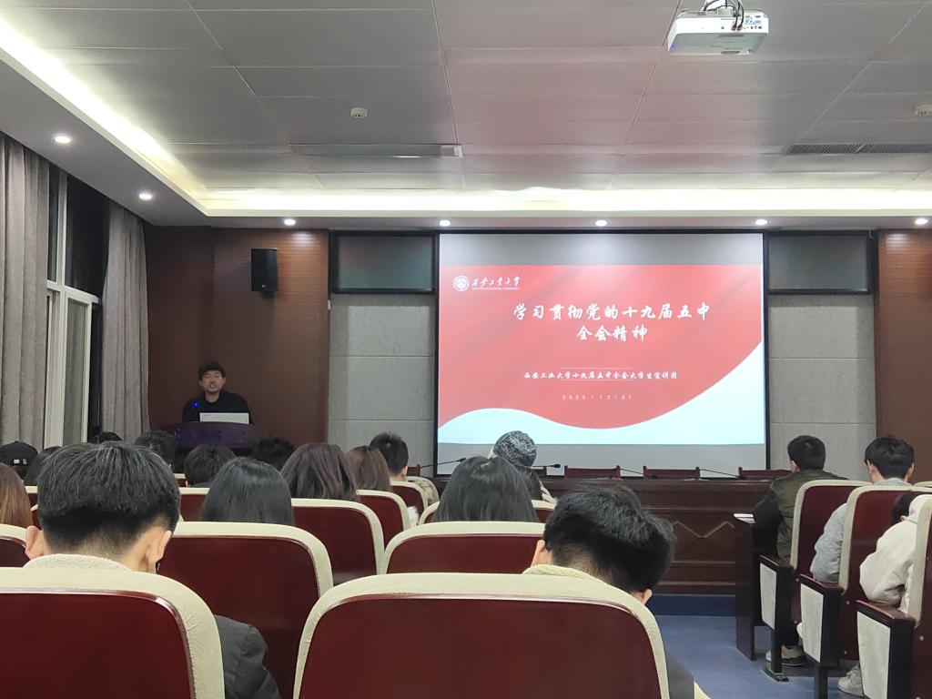 12月22日,suncitygroup太阳集团举办党的十九届五中全会精神宣讲会。suncitygroup太阳集团学习贯彻党的十九届五中全会精神老员工宣讲团成员张零担任主讲嘉宾,为在座100余名建工师生做“学习贯彻党的十九届五中全会精神”主题宣讲,公司师生党员、团学干部共计100余人参加会议。张零从新发展阶段的重大意义和特征、我国发展环境面临的深刻复杂变化、构建新发展格局的战略构想和着力点、二〇三五年远景目标、“十四五”规划的方针、目标和任务、坚持党的全面领导等方面,立足新时代青年,通过回顾历史、展望未来、国际比较等对十九届五中全会内容进行了深入浅出的独到分析,让五中全会精神真正做到入脑入心入行。