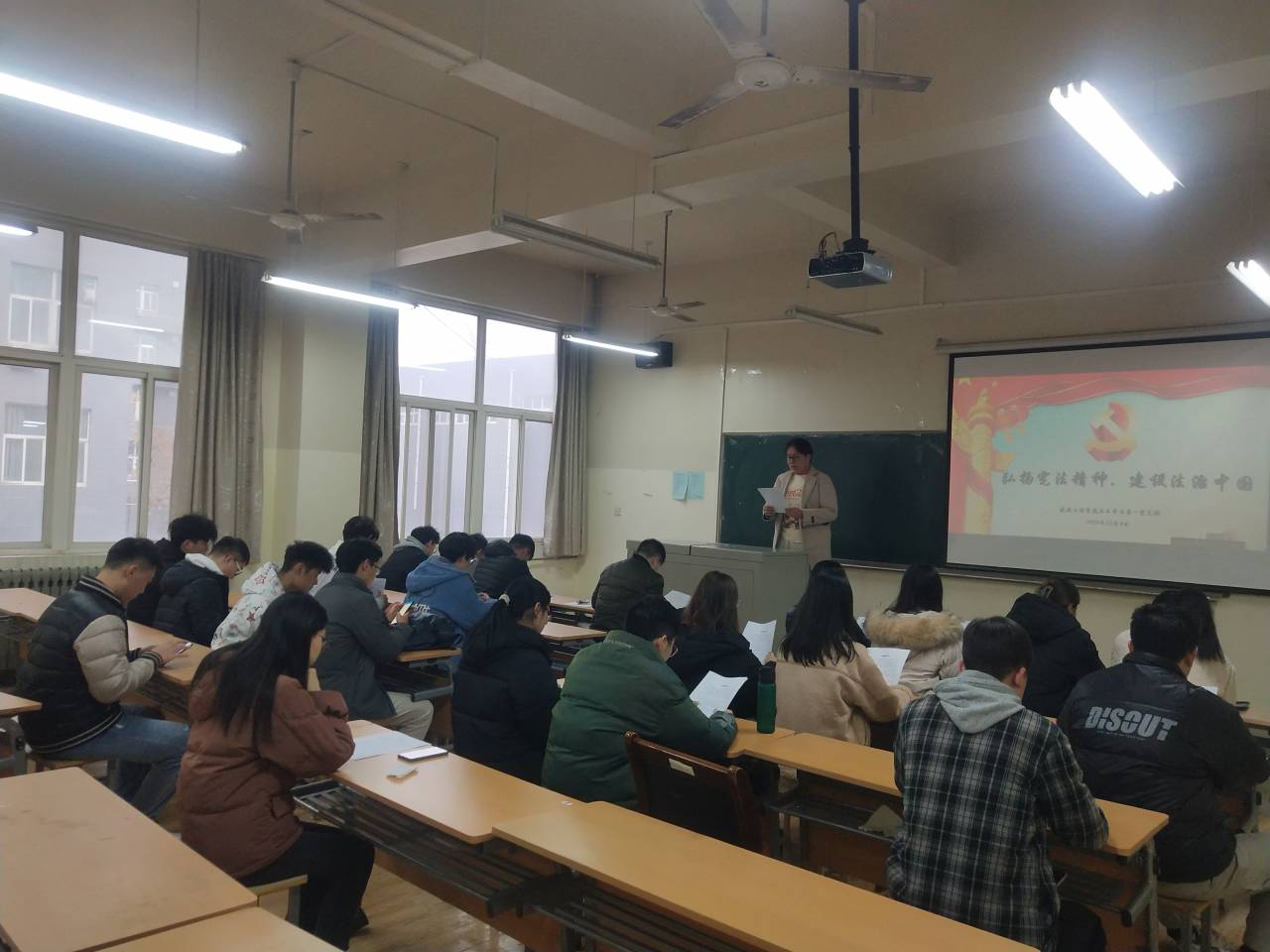 为纪念第七个国家宪法日,深入学习宣传习近平法治思想,大力弘扬宪法精神,增强师生党员的宪法意识,12月4日,suncitygroup太阳集团土木员工第一党支部在工4-202召开党员大会,集中开展“学宪法、讲宪法”活动。