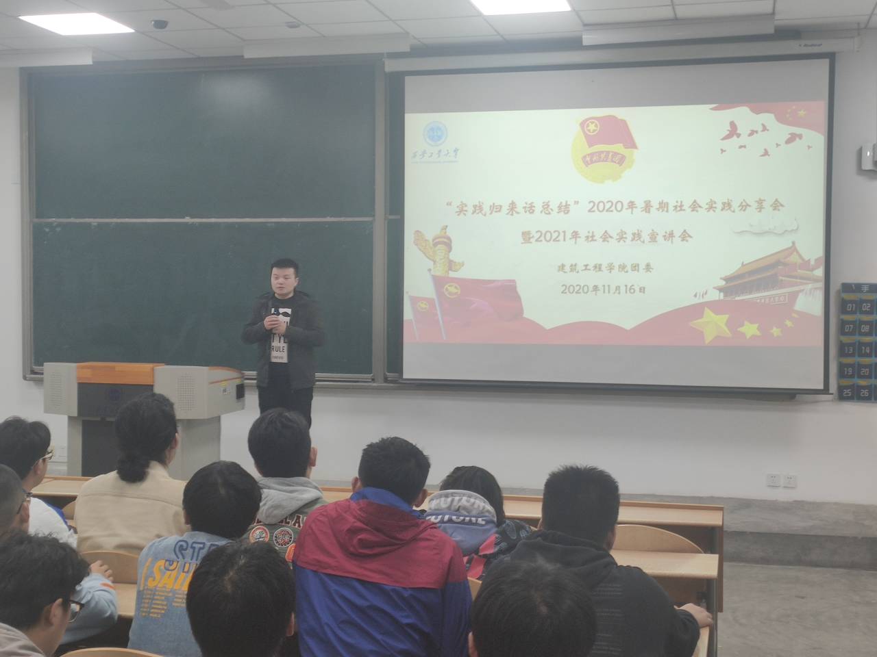 11月16日晚,suncitygroup太阳集团“实践归来话总结”2020年暑期社会实践分享暨2021年社会实践宣讲会在教1-101举行,公司2019级全体本科生参加此次分享会,会议由公司团委书记刘冬主持。