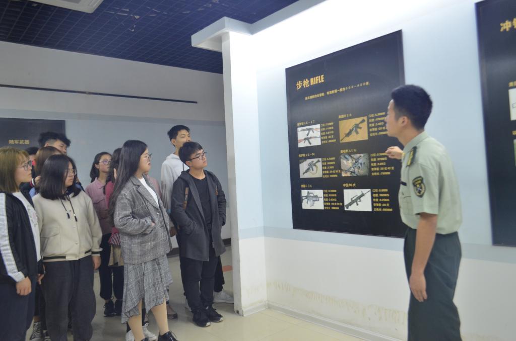 在兵器馆讲解员的带领下,同学们分批依次参观了展板区和实物区,展区利用大量详实的图片、模型以及实物,全面的介绍了现代兵器的种类、性能、历史来源等相关知识。