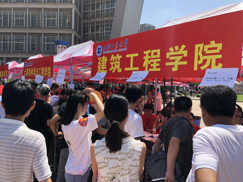 2018年9月3日是迎接新同学的第一天,迎新标语振奋人心,迎新工作点人头攒动,爱心服务车队穿梭往来,前来报到的新生络绎不绝,现场有条不紊,一个个忙碌的身影,一张张亲切的笑脸,构成了西工一道道亮丽的风景线。工作人员们仔细审查报道的相关资料并认真登记好相关信息;其他迎新人员负责为初来乍到的新生们分发报到须知、引导路线并介绍公司。公司还特地为新生及家长准备了“与建工公司初见留影”合影墙,受到了新生及家长的欢迎。