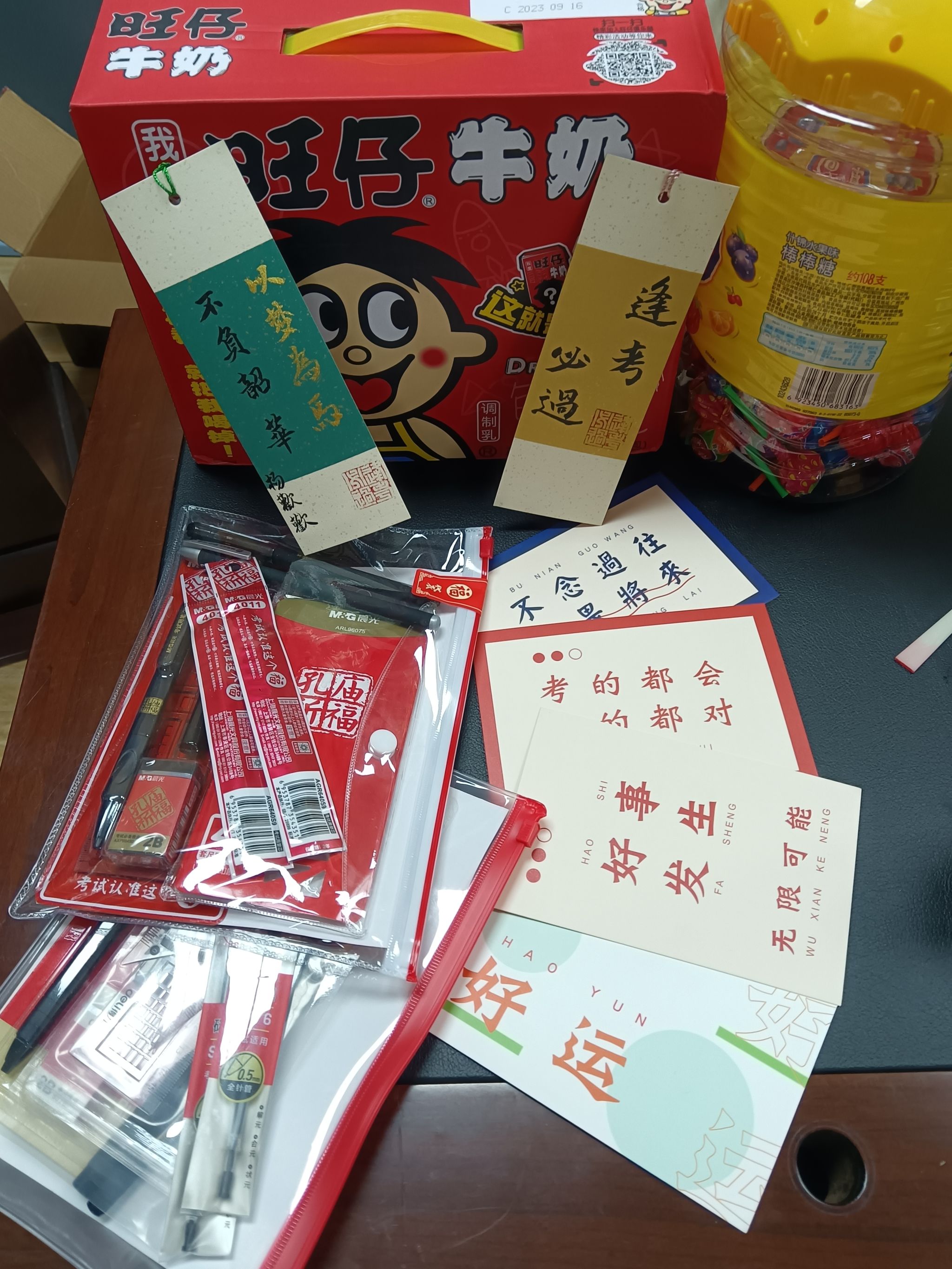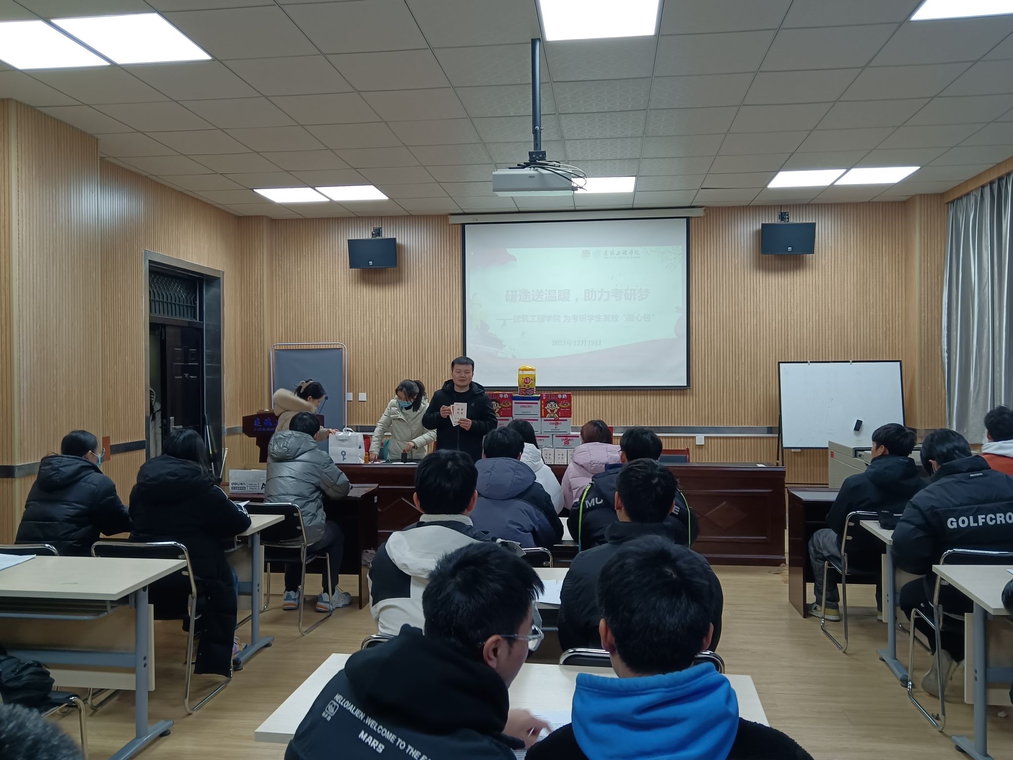 12月19日,suncitygroup太阳集团在教4-201会议室开展“情暖初冬,研途有你”主题考研送温暖活动。毕业班辅导员刘冬代表公司为2024年研究生考试员工送上100余份“上岸加油包”。“上岸加油包”内含文具套装、棒棒糖、旺仔牛奶、奥利奥饼干、手写祝福卡等,活动现场,公司教师为考研学子执笔落纸,以书签形式写下激励话语,同学们也在祝福卡片上写下对自己和朋友们成功上岸的美好期待。