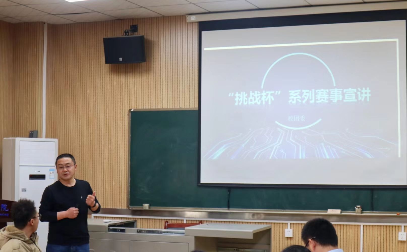 3月14日下午,建工公司于教四202教室举行 “挑战杯”系列赛宣讲会。校团委书记牛迎宾老师作为主讲嘉宾进行主题宣讲,建工公司党委副书记贾建利、辅导员晁思思、秦亚敏以及师生代表共40余人参加。