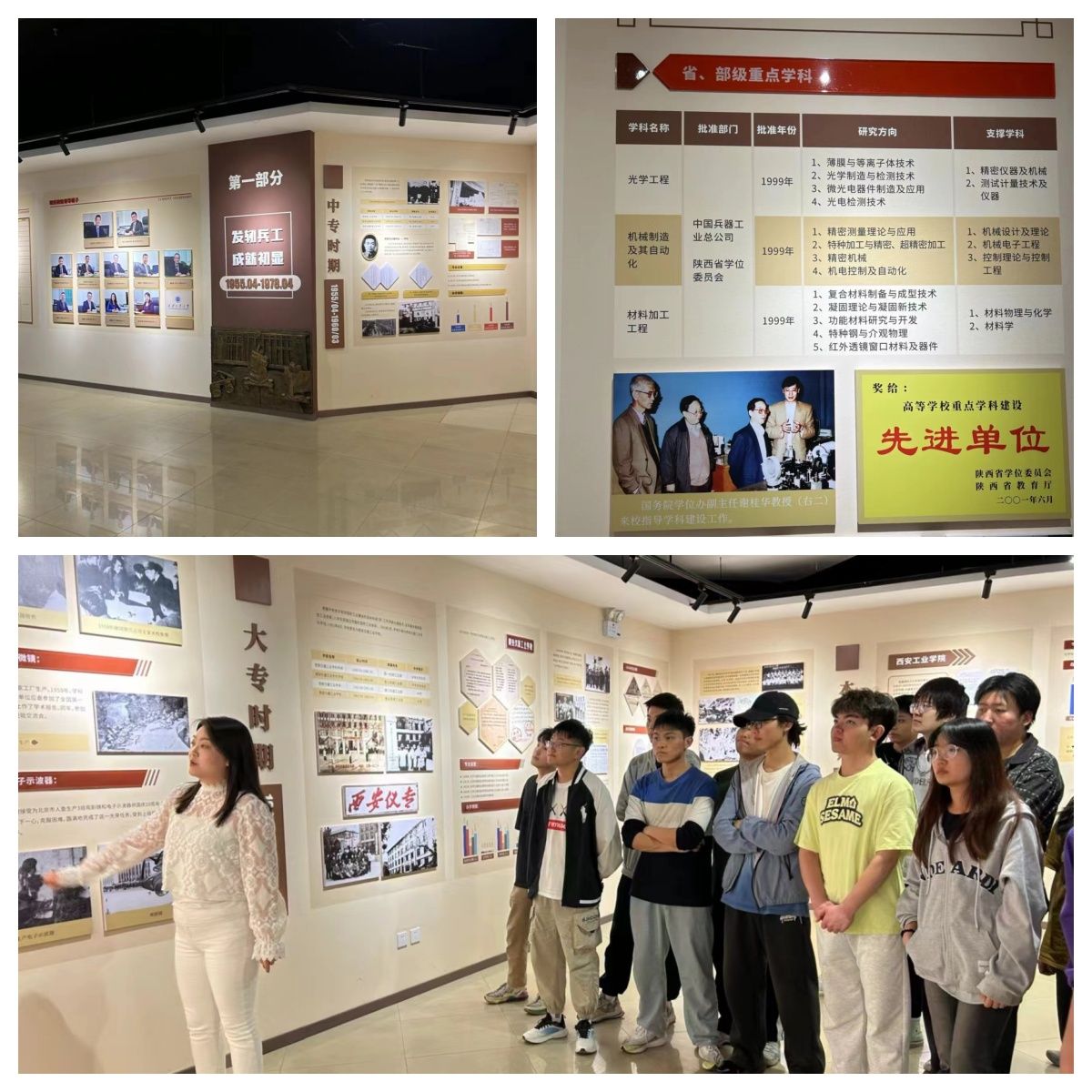 公司是以兵工为特色的公司,公司从建校到至今发展规模不断在增大,光电工程、机械制造及其自动化以及材料加工工程等专业也被纳入省、部级重点学科,公司也被评为高等公司重点团队建设先进单位。展馆墙上陈列的众多事迹激起了同学们对于公司的自豪感,对于老一辈西工人的敬佩,感受着老一辈西工人的艰苦奋斗,督促众多员工们艰苦奋斗,唤醒他们努力学习的意识。