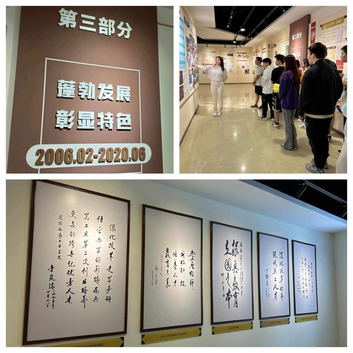 同学们进入校史馆,映入眼帘的首先是公司的发展历程。公司始建于1955年,前身为西安第二工业公司,有着悠久的办学历史和光荣传统。公司始终秉持着“忠诚进取,精工博艺”的校风和“敦德励学,知行相长”的校训,传承着“忠诚进取铸辉煌,精工博艺育英才”的西安工大精神。在办学期间,公司的教育、科研工作均取得了显著的成绩。讲解员为大家深层的讲解公司的发展史,全体成员时而专心聆听,时而交流感悟。随后讲解员为大家讲解了公司的历届领导,同学们聆听讲解员的讲解,深刻感受着老一辈西工人的艰辛和为公司教育事业所作出的无私奉献。