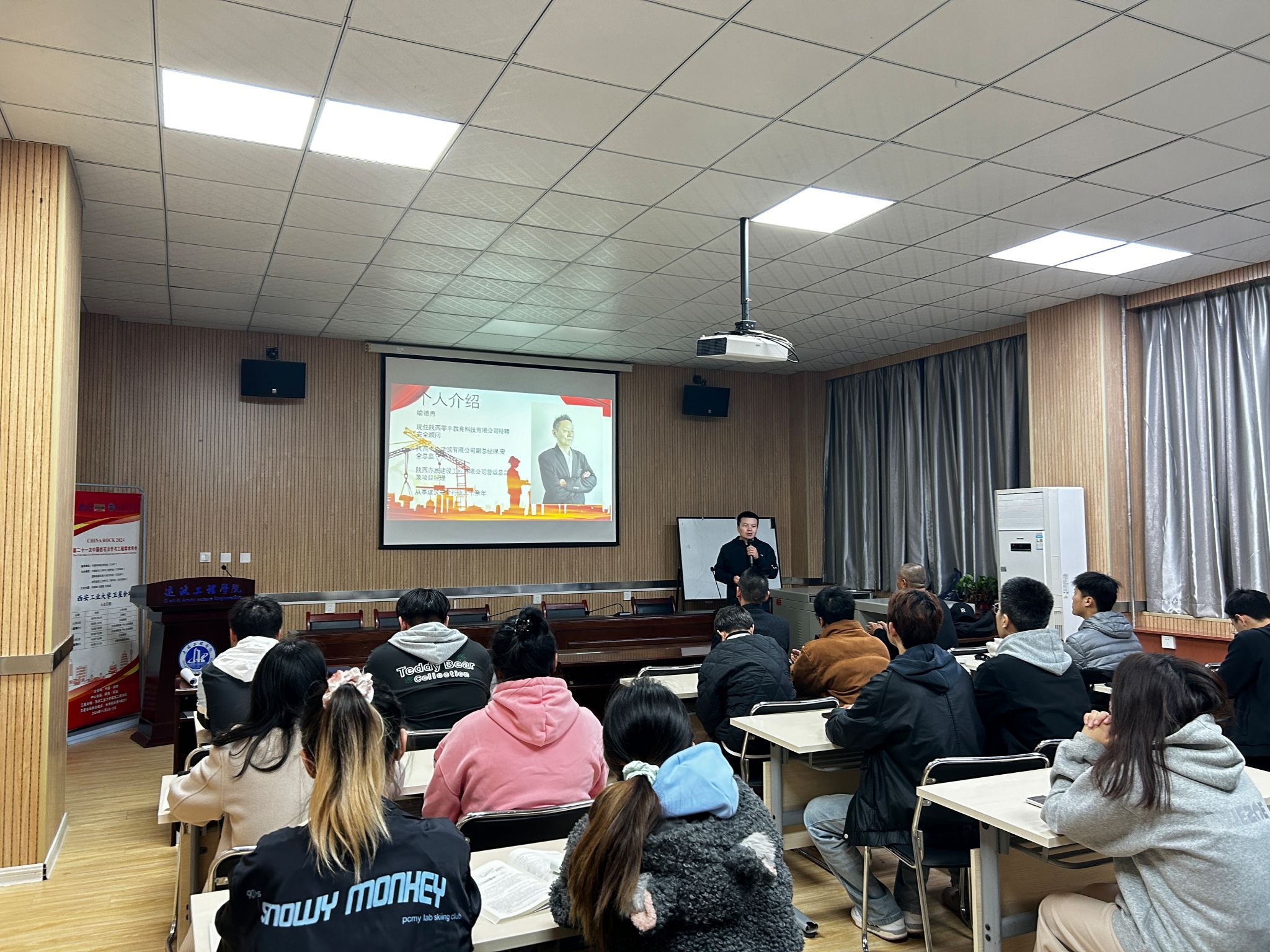 建筑安全行业资深人士喻德勇从“什么是安全?安全为了谁?”切题,深入浅出地向同学们阐述了安全员的主要职责,突出了安全员在建筑领域的关键地位,宛如建筑安全防线的守护者。随后,他结合自身从业经历,以实际案例向大家生动展现了安全事故带来的惨痛教训。最后,他对职业发展方向和用人单位岗位需求进行介绍,让同学们对安全员这一身份有了全新认识。刘冬鼓励大家抓住职业规划契机,积极探索和规划职业生涯,实现高质量充分就业。