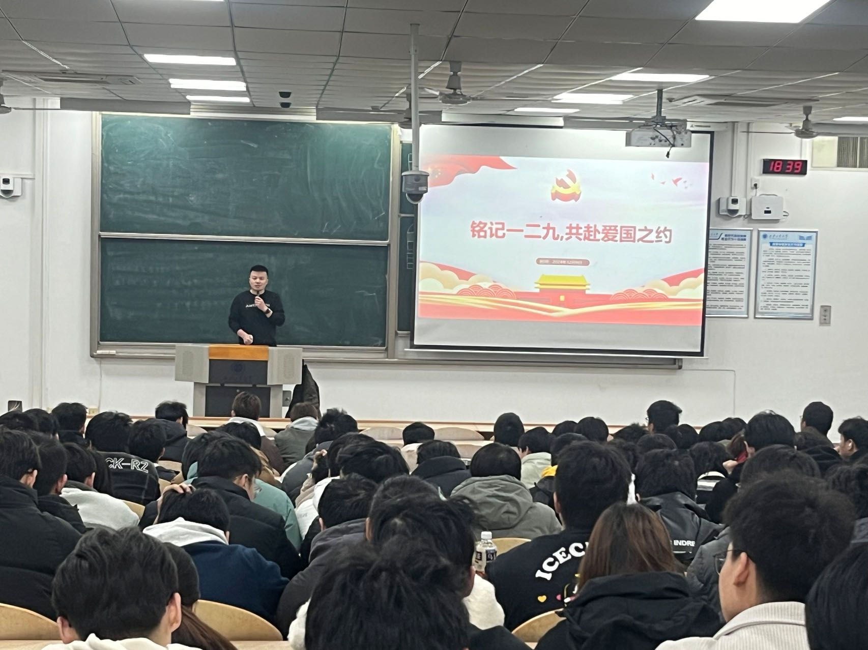 会上,刘冬结合一二九运动、国家公祭日等重要时间节点,采用PPT向同学们讲述了“一二·九”运动的历史背景、经过及意义,国家公祭日的设立初衷和深远影响,以及众多在革命战争中英勇牺牲的英雄人物事迹等,借助生动的讲述、丰富的图片以及感人的视频,将那段尘封的历史故事重新展现在大家眼前。刘冬强调,青年是新时代的追梦人,承载着祖国的未来与希望,一定要把爱国主义精神牢牢扎根于心。