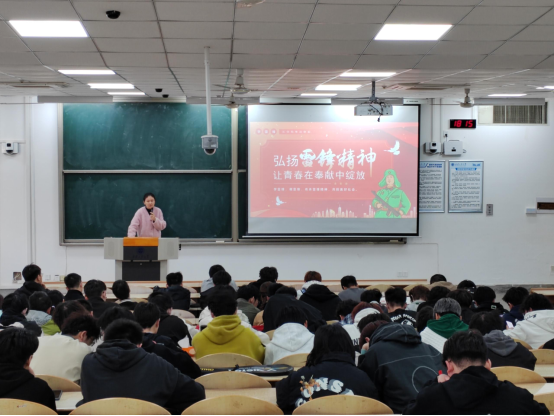 秦亚敏老师随后发言,她殷切鼓励同学们把雷锋精神真正融入内心、落实到行动上。倡导大家在日常学习和生活里,主动伸出援手帮助他人,踊跃投身各类志愿服务活动,用实实在在的行动诠释新时代青年所肩负的责任与担当。同学们专注聆听,眼神中透露出对雷锋精神的深深敬仰,以及传承和践行这一精神的坚定决心。