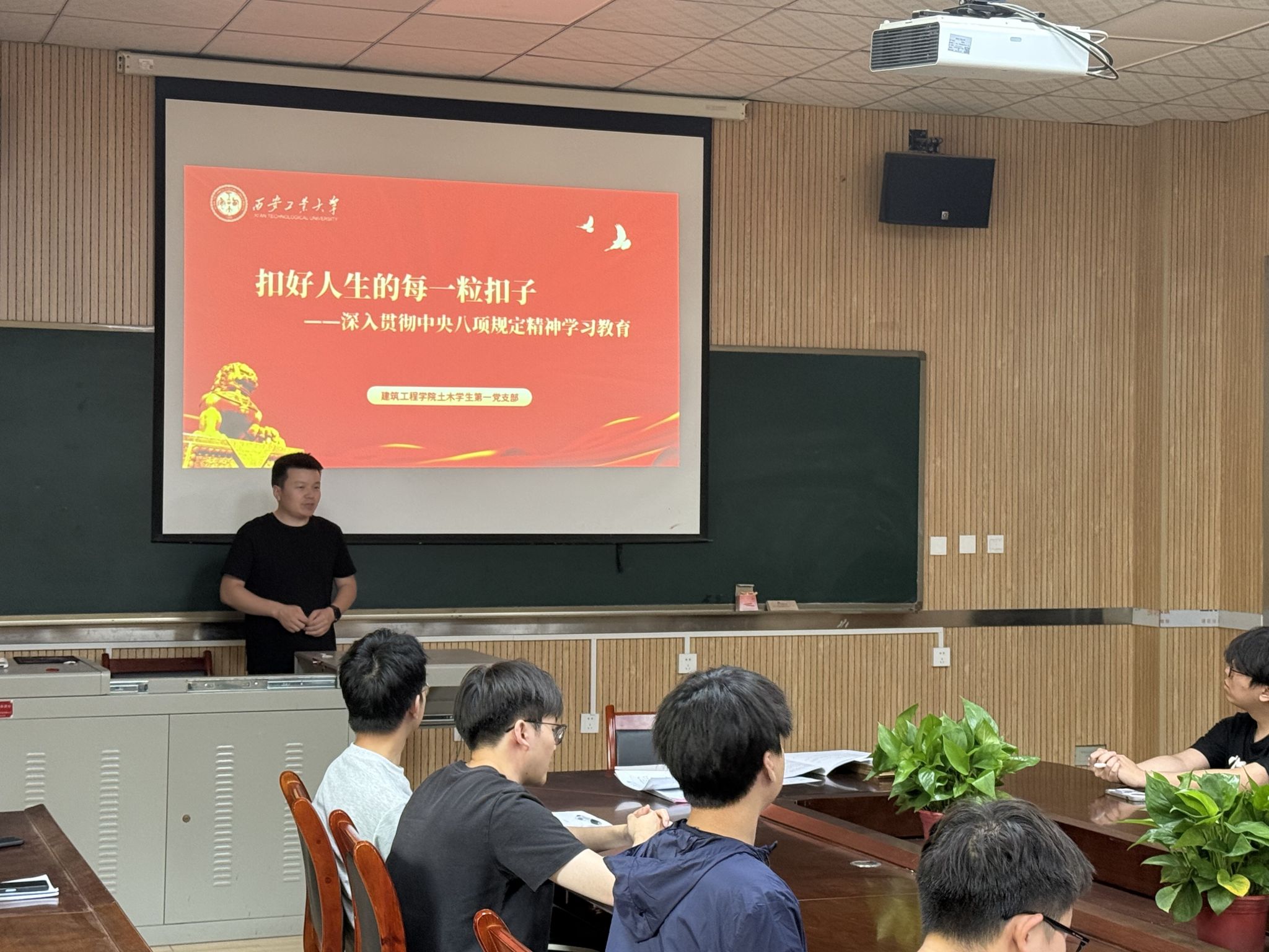 课上,刘冬引用习近平总书记对青年的殷切嘱托““走好人生的路,系好人生的第一颗纽扣。”,他强调,不仅要扣好人生第一粒扣子,剩余的每一粒扣子也都要扣好。对于即将步入社会、投身强国建设的土木学子而言,树立正确的世界观、人生观、价值观,特别是坚守廉洁底线,就是扣好职业生涯至关重要的“第一粒扣子”。中央八项规定精神作为全面从严治党的“金色名片”,是长期有效的铁规矩、硬杠杠,全体党员要提高政治站位,必须时刻保持清醒头脑,自觉抵制各种诱惑。