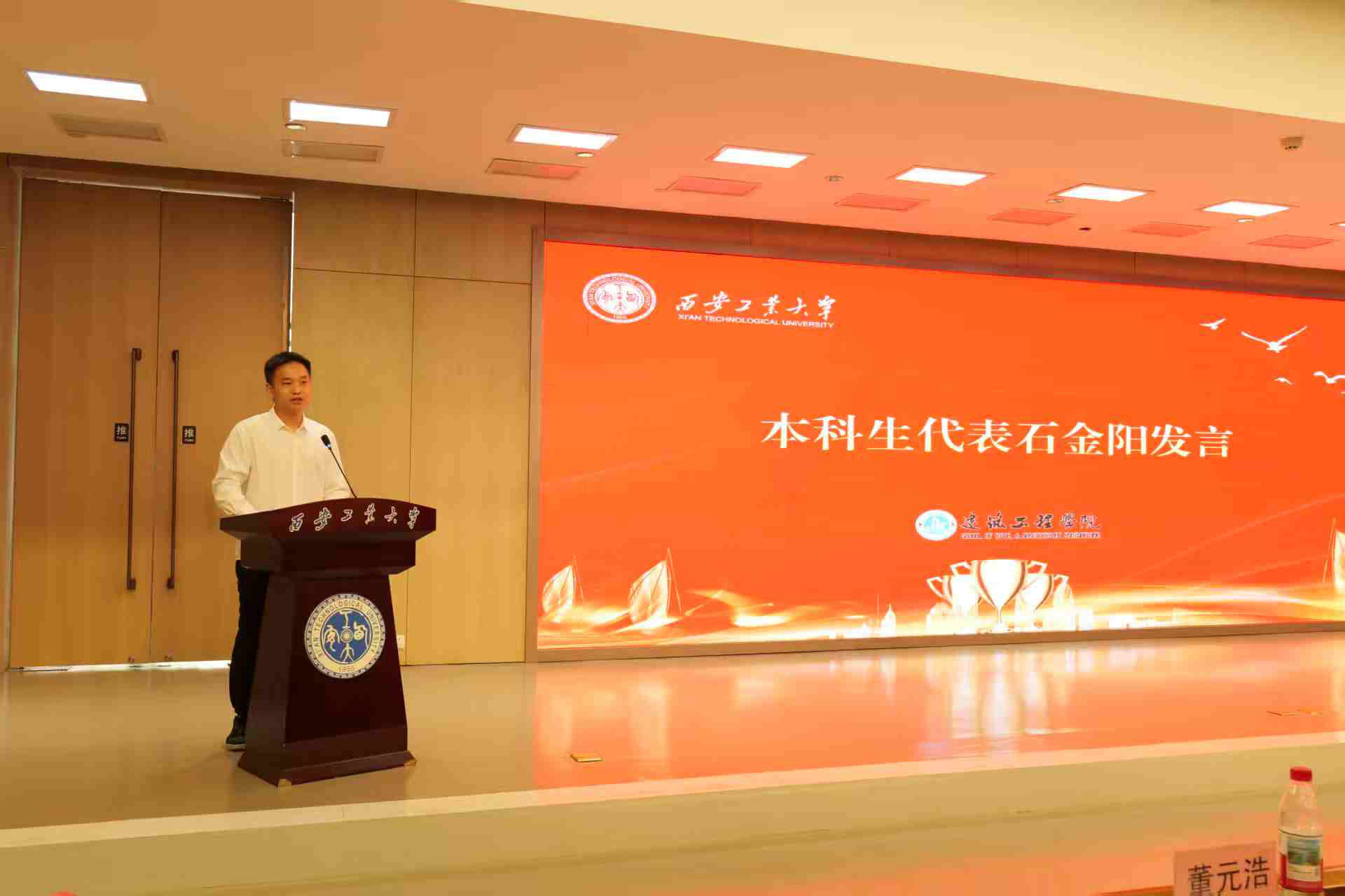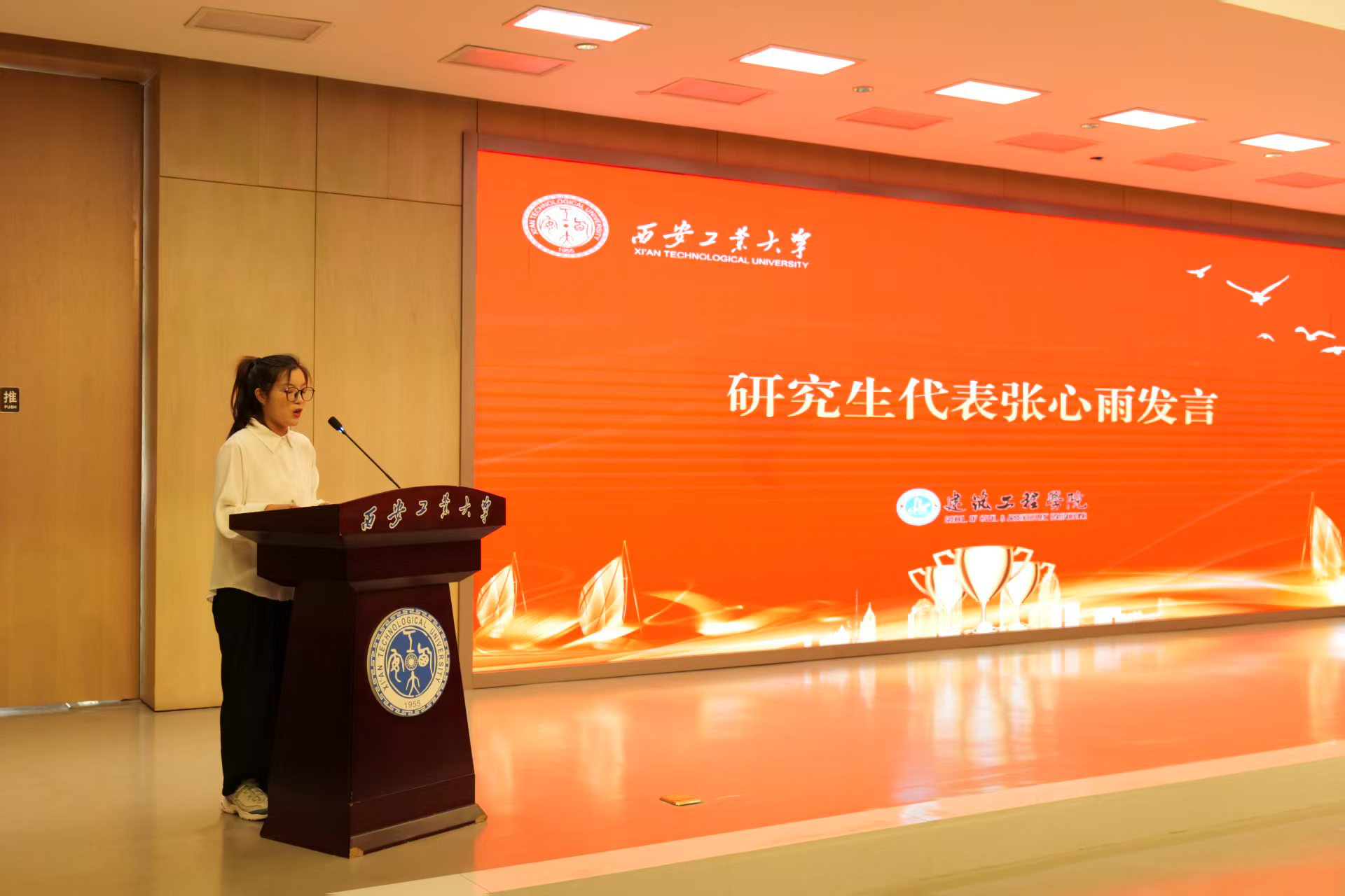 颁奖仪式后,研究生获奖代表张心雨和本科生获奖代表石金阳分别上台发言。他们分享了在学术探索、实践锻炼、克服困难、追求卓越过程中的成长感悟与心路历程,表达了继续努力、勇担使命的决心,展现了建工学子昂扬向上的精神风貌,深深感染了在场的每一位师生。