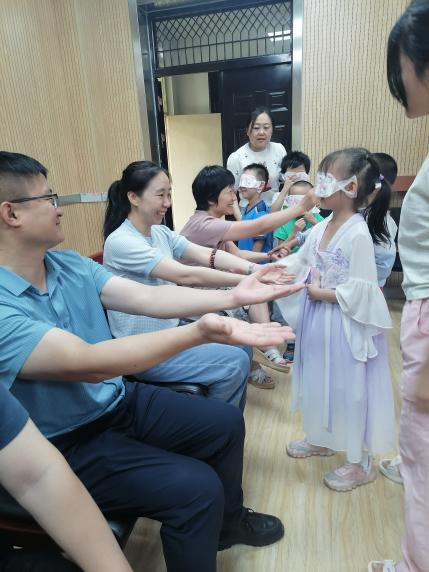 随后的“萌娃蒙眼找妈妈(爸爸)”游戏环节考验了小朋友对妈妈和爸爸的熟悉程度,找到妈妈的孩子无比骄傲,认错妈妈的萌娃一脸害羞,现场氛围无比温馨,还有“画鼻子”游戏也令孩子们开心地又蹦又跳。