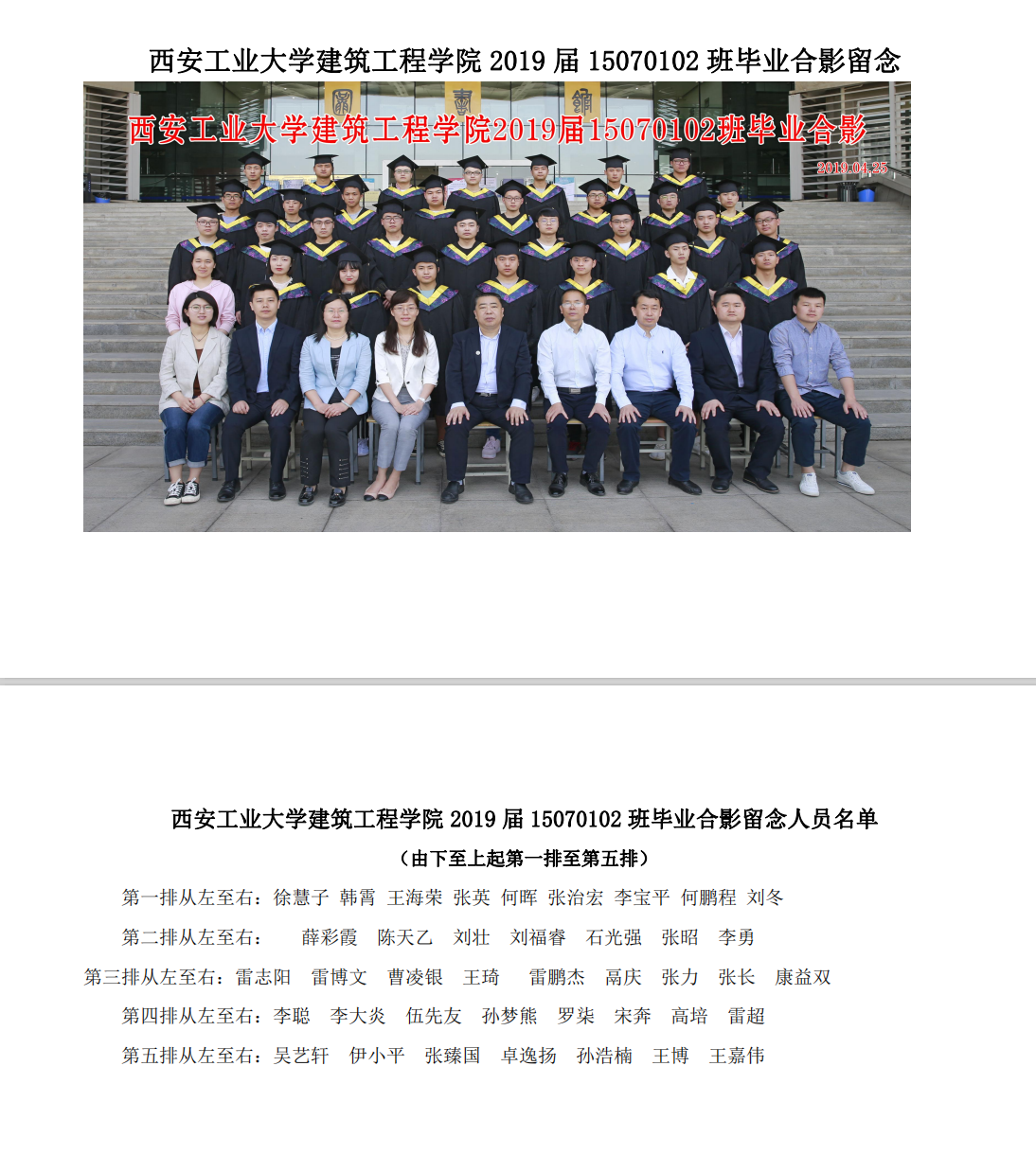 suncitygroup太阳集团2019届15070102班毕业合影留念