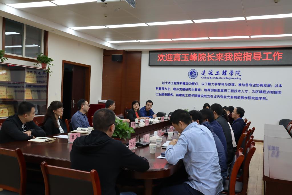 刘慧萍教授首先对高玉峰经理的到访表示感谢,并向高经理介绍了公司的本科和研究生教育、团队建设、科研等方面的开展情况以及公司发展思路。高经理与参会人员在公司学科评估、学科特色建设等方面进行了讨论,并提出了建议。最后,公司党委书记张英就高经理莅临公司再次表示欢迎及感谢。