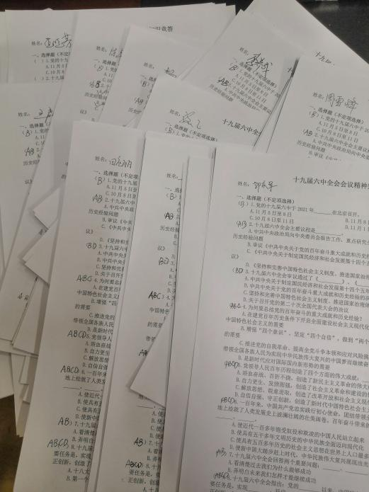 本次知识竞答活动采取问卷形式,工会干部精心准备了20道十九届六中全会基础知识问题,采用不定项选择和判断两种题型,帮助广大教师对全会精神加深了解和掌握。老师们通过查手机、讨论等方式,推动十九届六中全会精神入脑入心,效果良好。