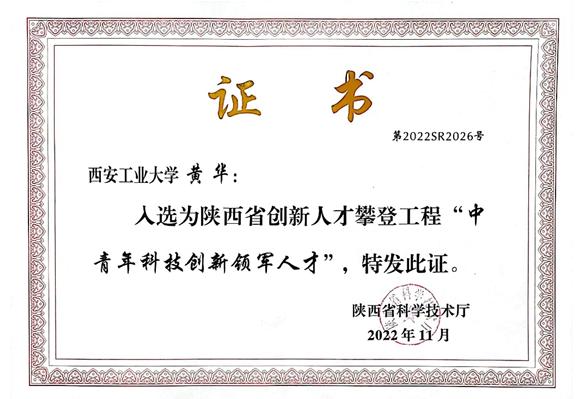 根据陕西省科学技术厅(陕科办发〔2022〕117号)文件,经个人申报、所在单位遴选、主管部门推荐、资格审查、专家评审、会议审定、人员公示等环节,全省共评出100名中青年科技创新领军人才,公司黄华教授入选。