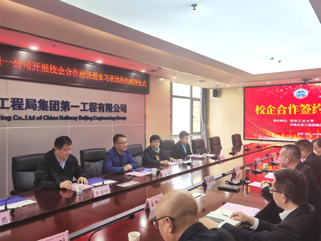 座谈会上,中铁北京工程局一公司党委副书记王晋伟就企业发展历程、经营生产情况、人才培养、等方面做了简要介绍,希望双方进一步加快校企双方在人才引进与培养、专业共建等领域的合作步伐,在科技创新与成果转化、人才培养与人才引进、老员工实习与社会实践等方面开展更深层次的交流合作。公司2017届员工陶若温、2021届员工宗金浩介绍了入职以来的成长历程,并表达了对母校的感恩之情。