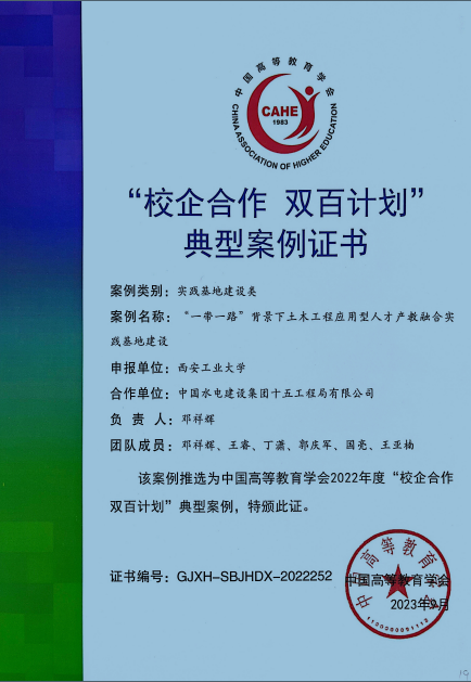 2023年5月13日,我院邓祥辉教授团队获邀参加了第60届中国高等教育博览会。本届高博会会议期间,中国高等教育学会对荣获2022年度“校企合作 双百计划”典型案例的282项典型案例颁发了证书,同时进行了典型案例经验交流。邓祥辉教授团队的案例“一带一路背景下土木工程应用型人才产教融合实践基地建设”荣获中国高等教育学会双百计划典型案例,邓祥辉教授出席了证书颁发仪式。