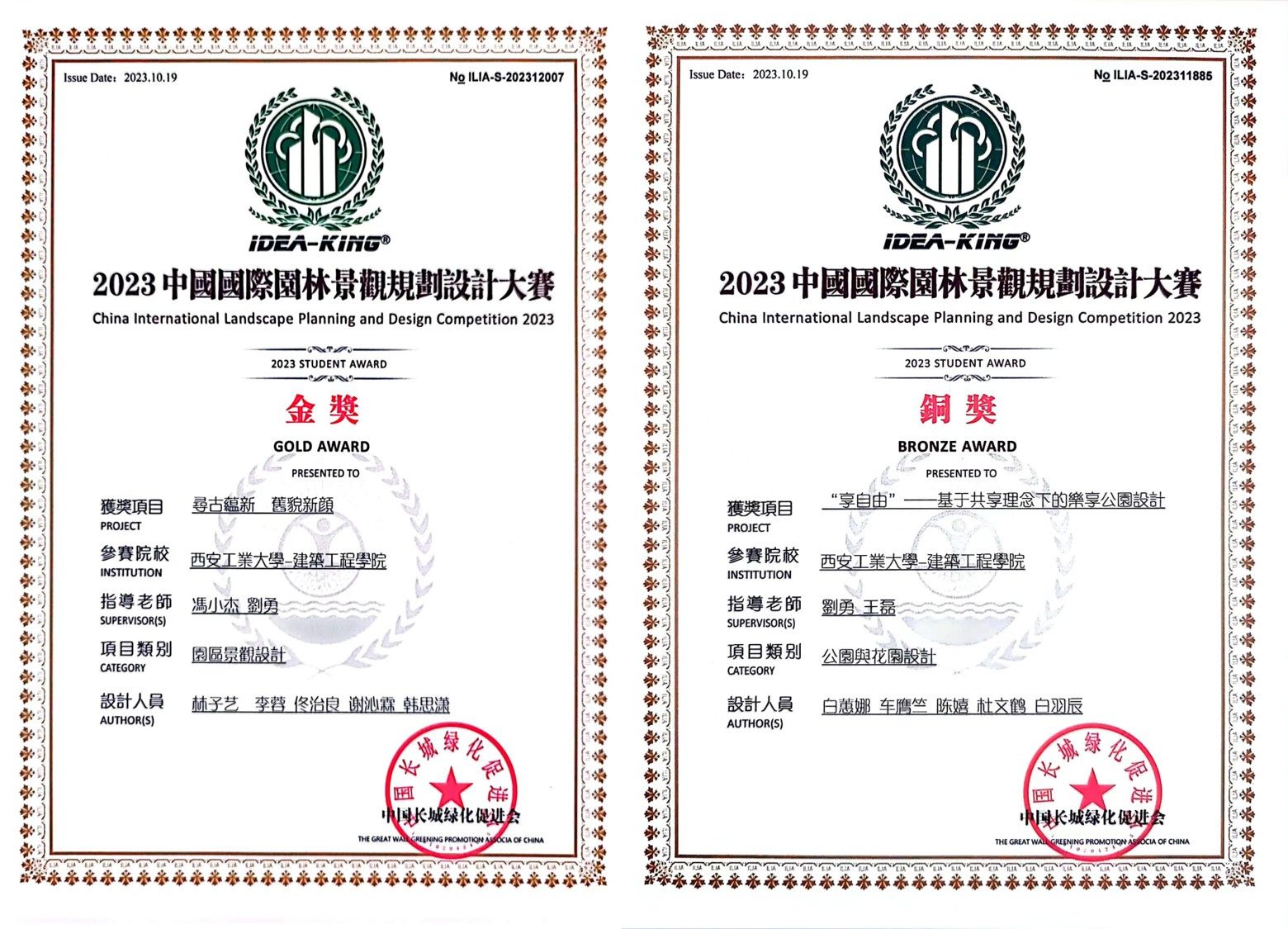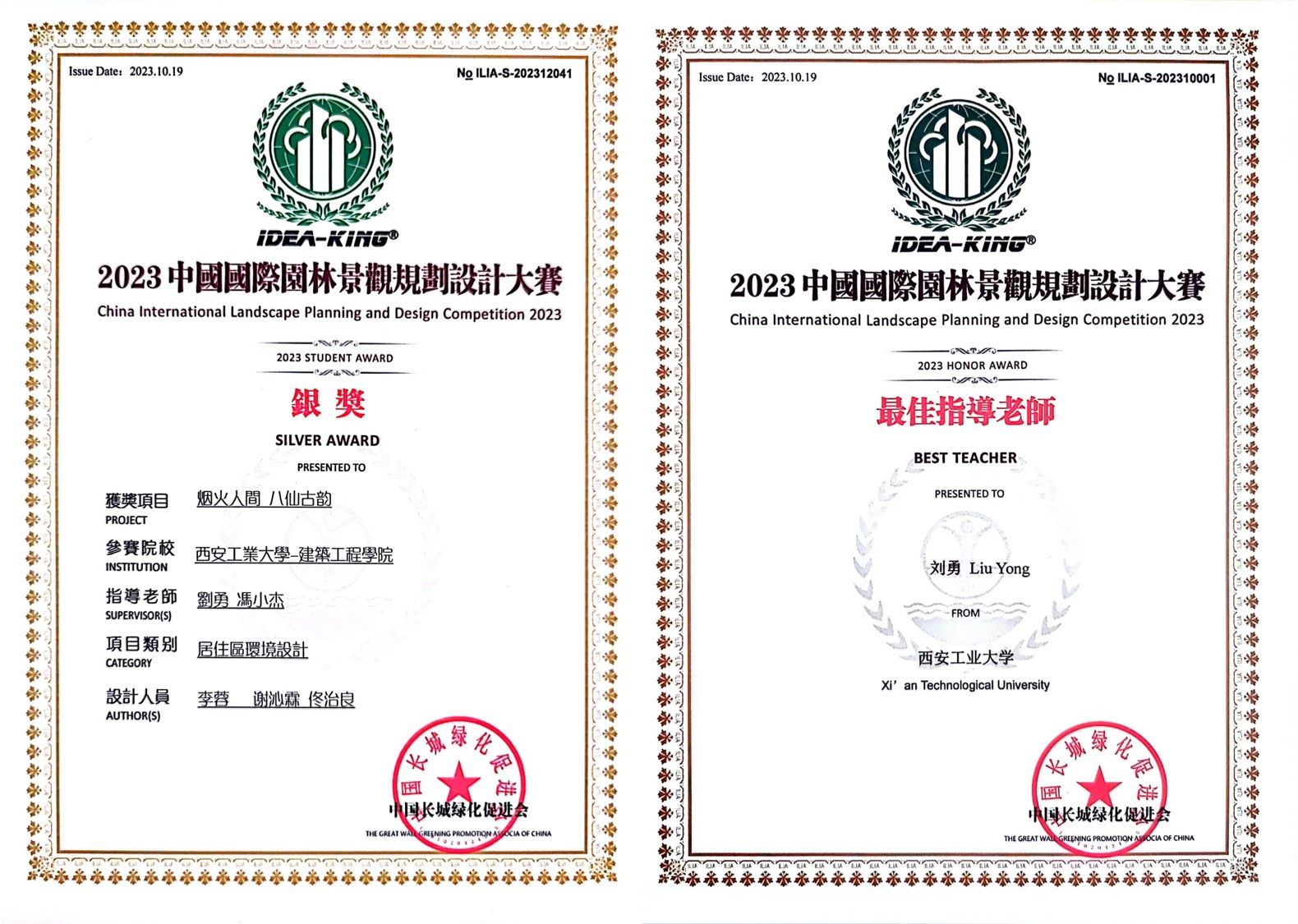 10月27日至29日,“艾景奖·2023中国国际园林景观规划设计大赛”路演在西安建筑科技大学举行。由冯小杰、刘勇老师指导、林子艺等同学的作品《寻古蕴新 旧貌新颜》获得金奖,并直接晋级国家林业草原局主办的全国林业草原创新创业大赛半决赛。本次大赛公司学子共获得金奖一项,银奖一项,铜奖一项,优秀奖一项,刘勇、冯小杰获评最佳指导教师,suncitygroup太阳集团获评优秀组织单位。