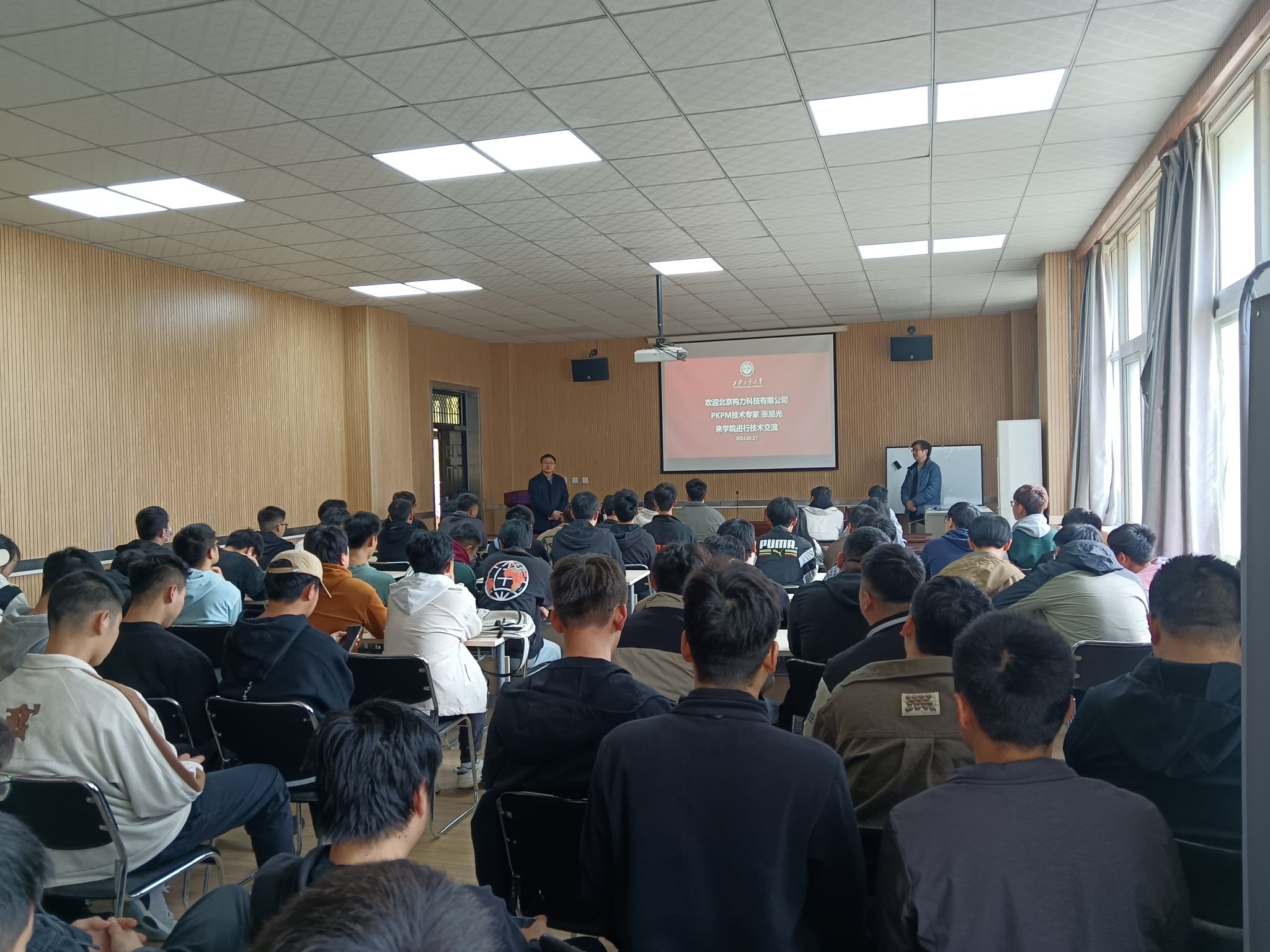 2024年3月27日上午在教4楼201学术报告厅, PKPM技术专家张旭光老师应邀来公司进行技术交流,土木工程系主任李成华、辅导员组长刘冬、教师代表以及2020届土木工程专业毕业生参加了讲座。