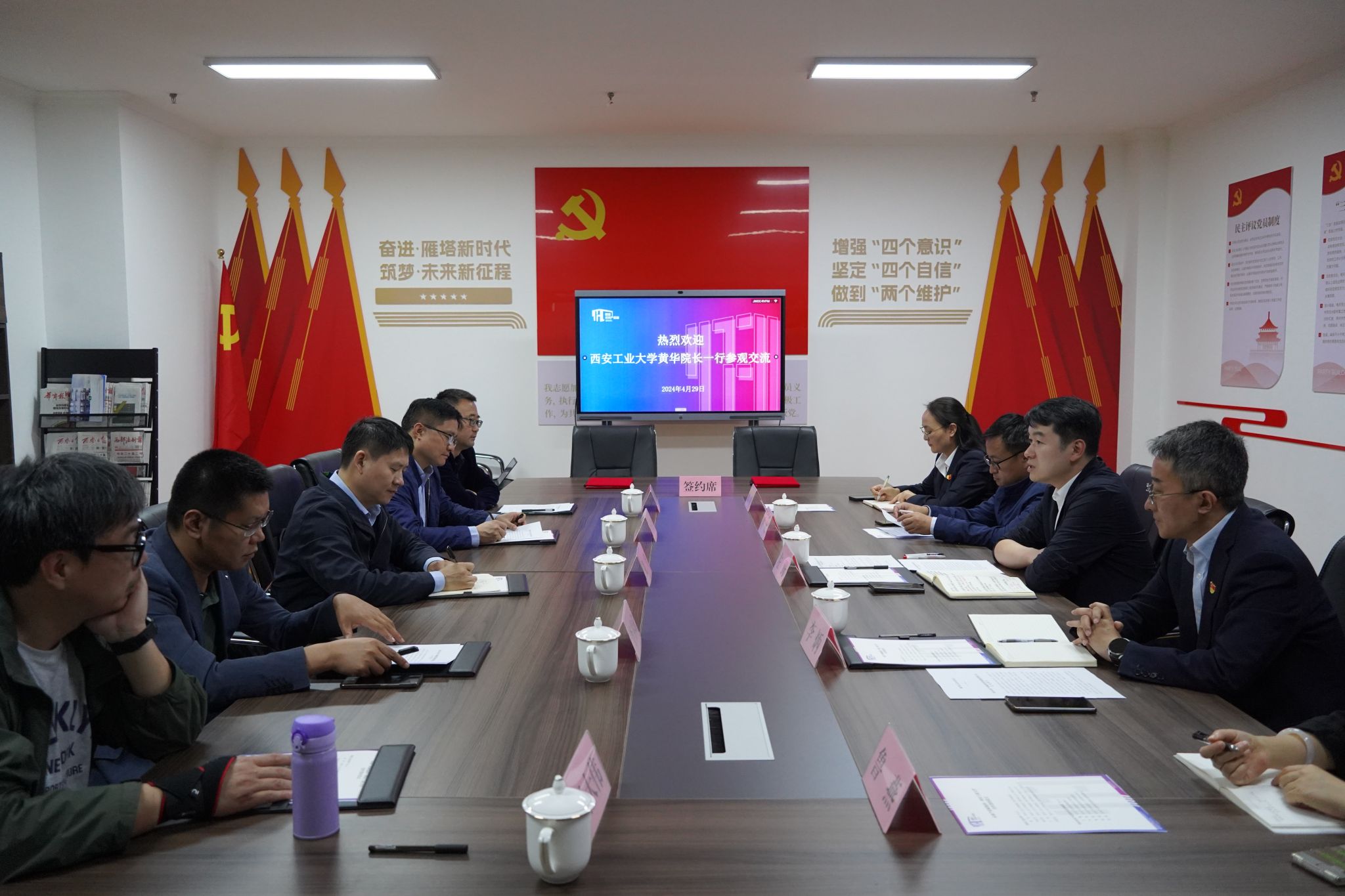 首先,集团董事长左腾对黄华经理一行表示欢迎,并介绍了西安未来产业城投资发展集团的基本情况,集团对人才、技术、科技等各方面资源都有着迫切需求,未来双方在激活协同创新活力、加强知识产权转化运用、推进产教融合人才培养、探索全面战略合作路径等方面具有广阔的合作空间。集团总工李炳在企业发展长廊前为黄华经理一行介绍了集团的发展历史和近年取得的主要成绩。