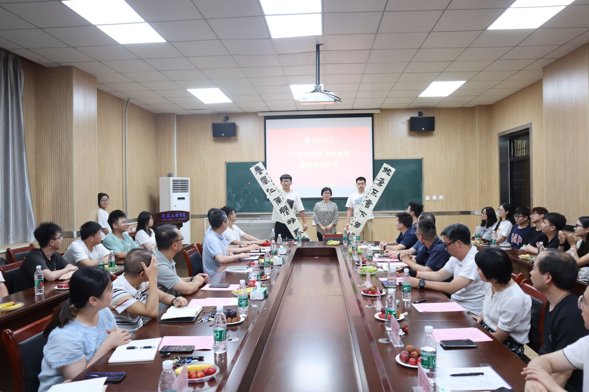 会上,大家一同观看毕业季视频《人来人往,勿失勿忘》。参加座谈会的毕业生代表们或将奔赴西部基层就业,或将前往建筑名企就业,或将继续求学深造。大家围坐共话今日事,畅所欲言乐未央,细数在校的收获与感悟,感念师生情谊,展望未来愿景,为母校发展和人才培养献计献策,饱含着对母校的热爱与祝愿。