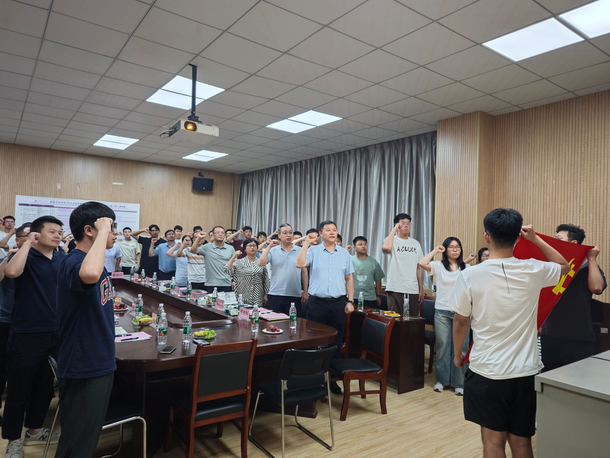 毕业生代表向公司赠送书法作品,表达对公司和母校的感激之情。最后,张浩飞带领全体毕业生党员重温入党誓词。铮铮誓词再次提醒毕业生们要时刻铭记党员身份,坚定理想信念,为实现中国式现代化挺膺担当。