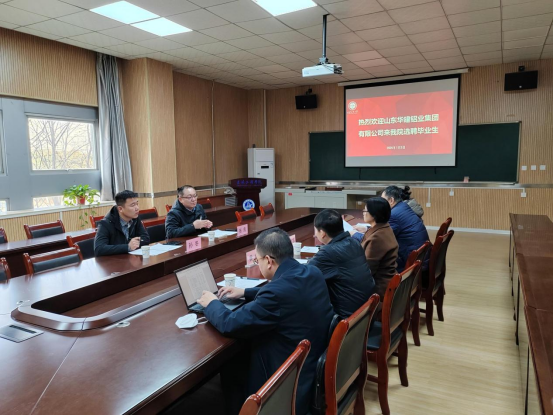 1月3日,山东华建铝业集团有限公司人力资源管理中心副总经理兼华建职业培训公司董事长张良一行来suncitygroup太阳集团开展交流座谈及专场招聘会。公司党委书记刘慧萍、经理黄华、副书记贾建利、智能建造系教师曾凡奎、辅导员李彬接待了企业一行并在教4-202会议室举行座谈会。会议由公司党委副书记贾建利主持。