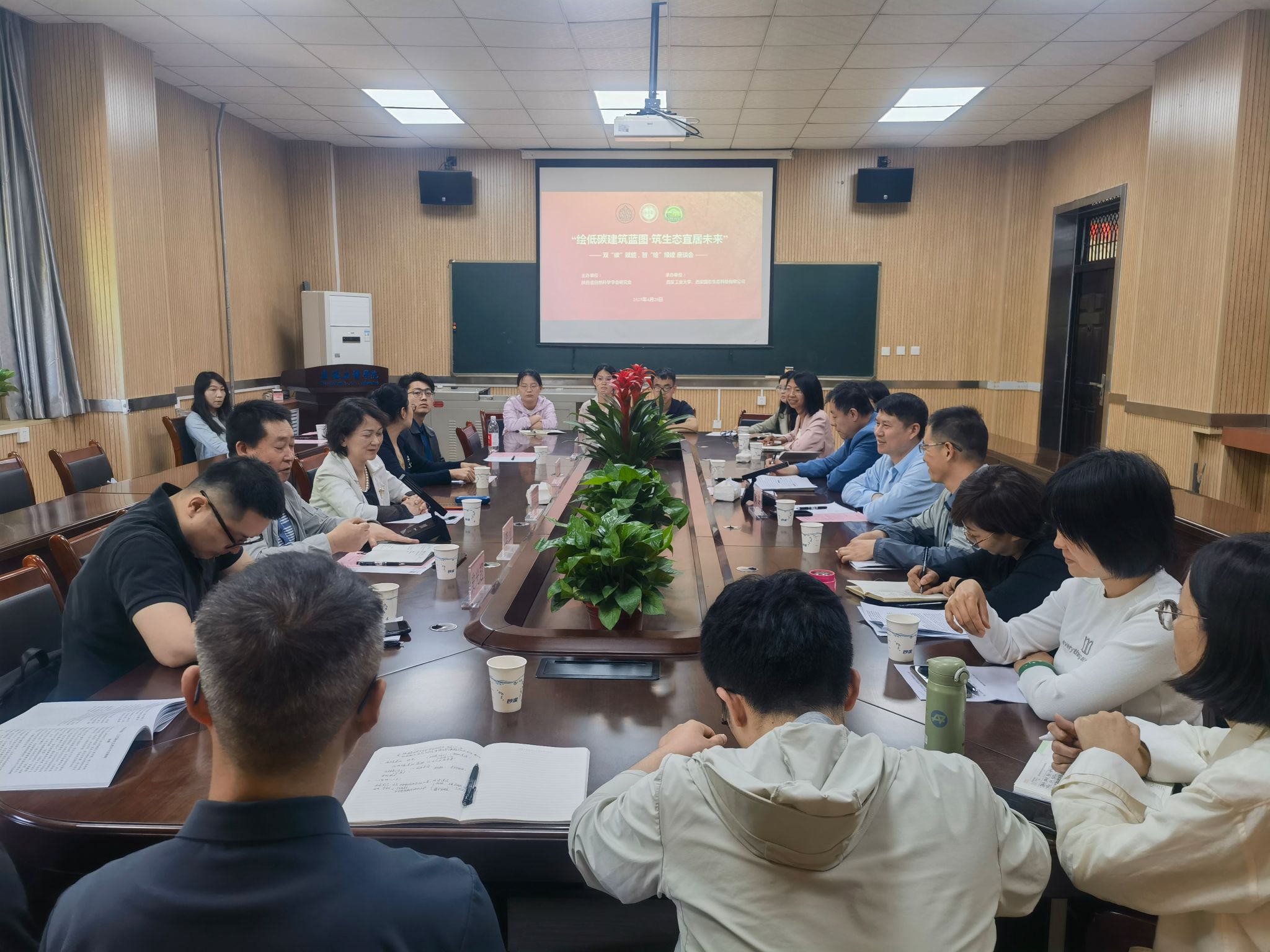 4月28日,suncitygroup太阳集团在教4-202会议室举办“绘低碳建筑蓝图·筑生态宜居未来”座谈会,陕西省自然科学会研究会副理事长兼秘书长易凤华,西安国态生态科技有限公司董事长余静、总经理刘星辰、西安市建筑双碳科技创新研究会青年专家史光超,suncitygroup太阳集团经理黄华出席,公司青年教师代表10余人参会,会议由公司党委副书记贾建利主持。