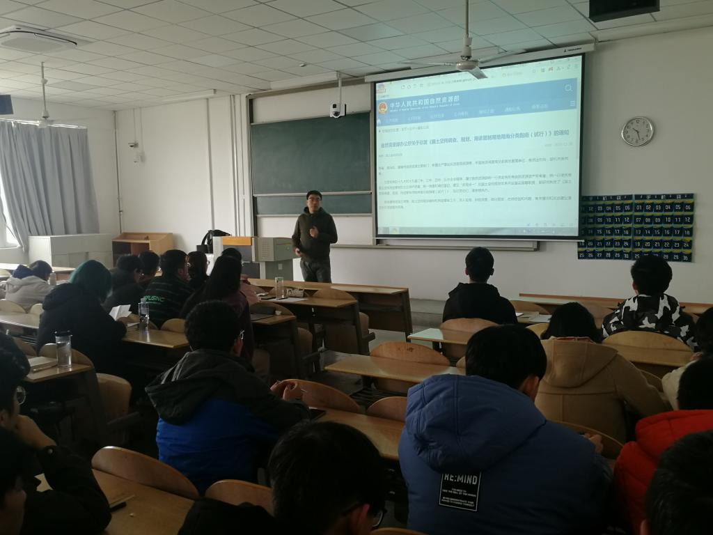 杨大伟老师首先与同学们一起学习了自然资源部办公厅印发的《国土空间调查、规划、用途管制用地用海分类指南》,然后就编制的背景、基本内容、对规划专业的影响三方面进行解读,最后与同学们进行研讨交流。
