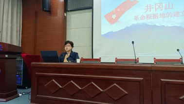 刘慧萍老师围绕“井冈山革命根据地”的历史讲授本次课程。主要为同学们讲述了井冈山革命根据地的建立、曲折发展、后期斗争以及在井冈山革命根据地建立的制度政策等内容,向同学们介绍了井冈山这个伟大的红色革命根据地,让大家更好的从中了解党的艰辛发展历程。
