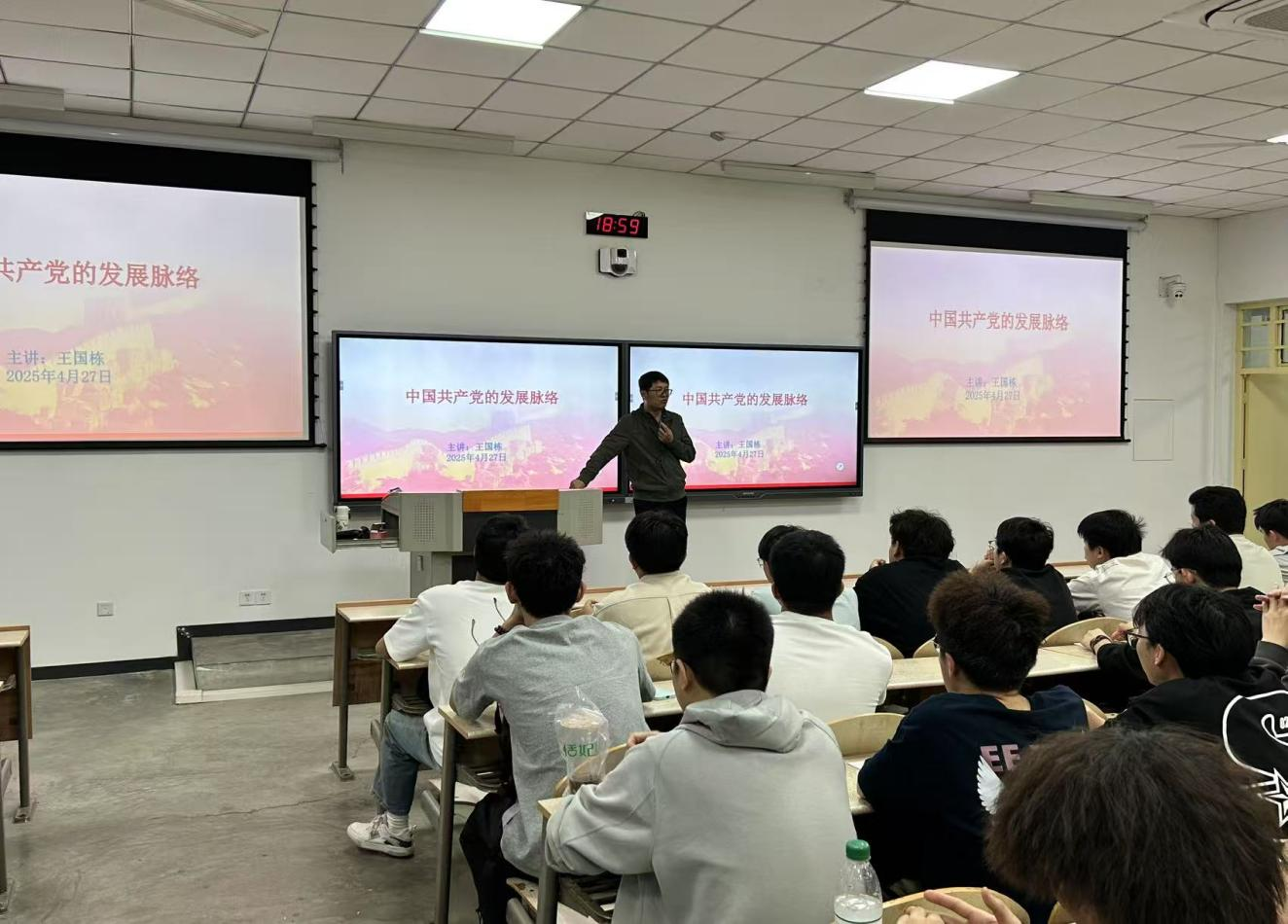 王国栋老师首先从早期革命、国共对峙、抗日战争以及解放战争四个方面讲述了党的奋斗历程,之后讲述了建国以来,中国共产党领导人民巩固政权,完成社会主义改造,带领中国人民从站起来、富起来到强起来,不断迈向民族复兴新征程。重温党的发展脉络,不仅是对历史的铭记,更是为从中汲取力量。续写属于我们这代人的辉煌篇章!