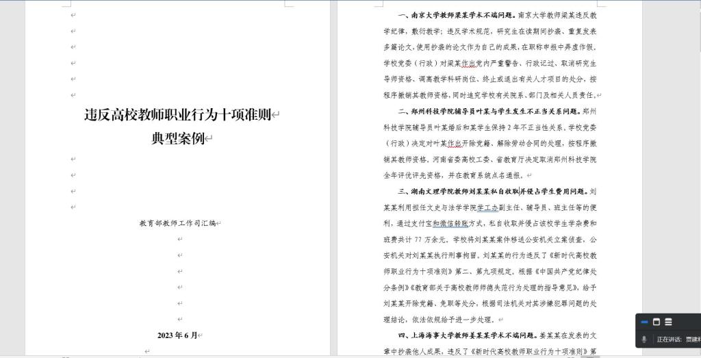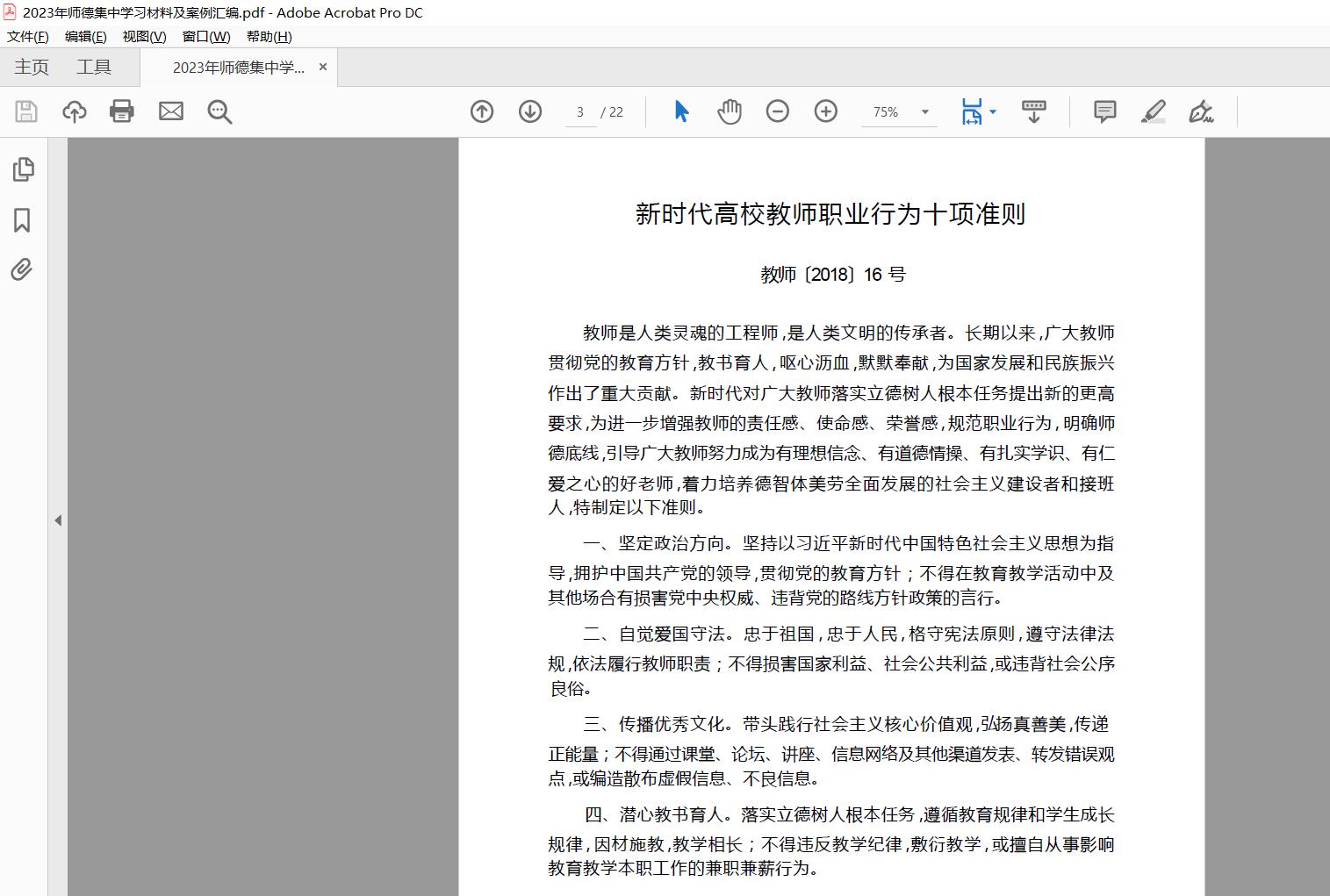 会上,大家集中学习了《违反高校教师职业行为十项准则典型案例》《新时代高校教师职业行为十项准则》《suncitygroup太阳集团2023年师德集中学习材料及案例汇编》等文件和资料。与会成员联系思想和工作实际自查剖析,均表示要进一步提升政治站位、强化政治担当,经常性地进行自我检视,加强警觉、提高意识、提升本领、履职尽责。