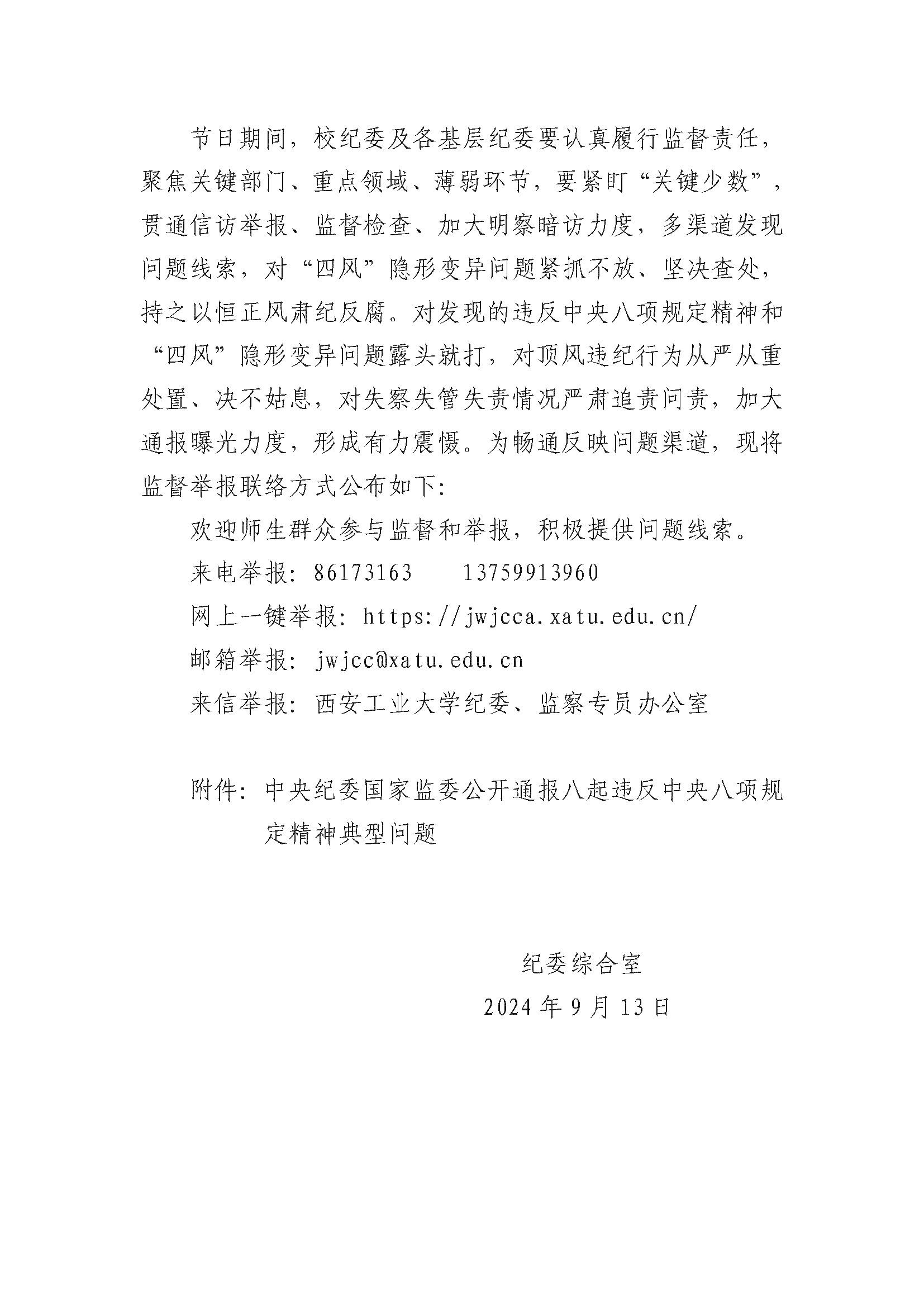 2024年中秋、国庆节纠“四风”树新风工作提示